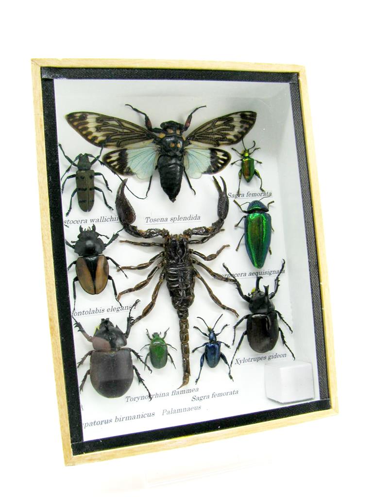 Echte exotische Insekten im Schaukasten aus Holz und Glas m-12