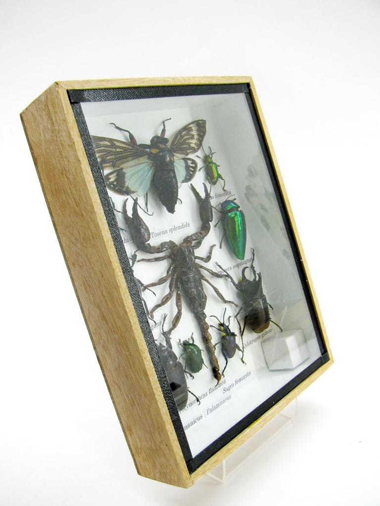 Echte exotische Insekten im Schaukasten aus Holz und Glas m-09