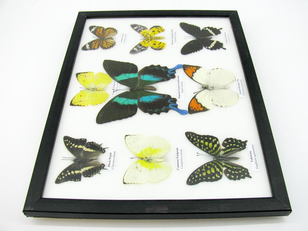 Wunderschöne Schmetterlingssammlung im Bilderrahmen mit 9 echten Schmetterlingen – A-09-blumei-01