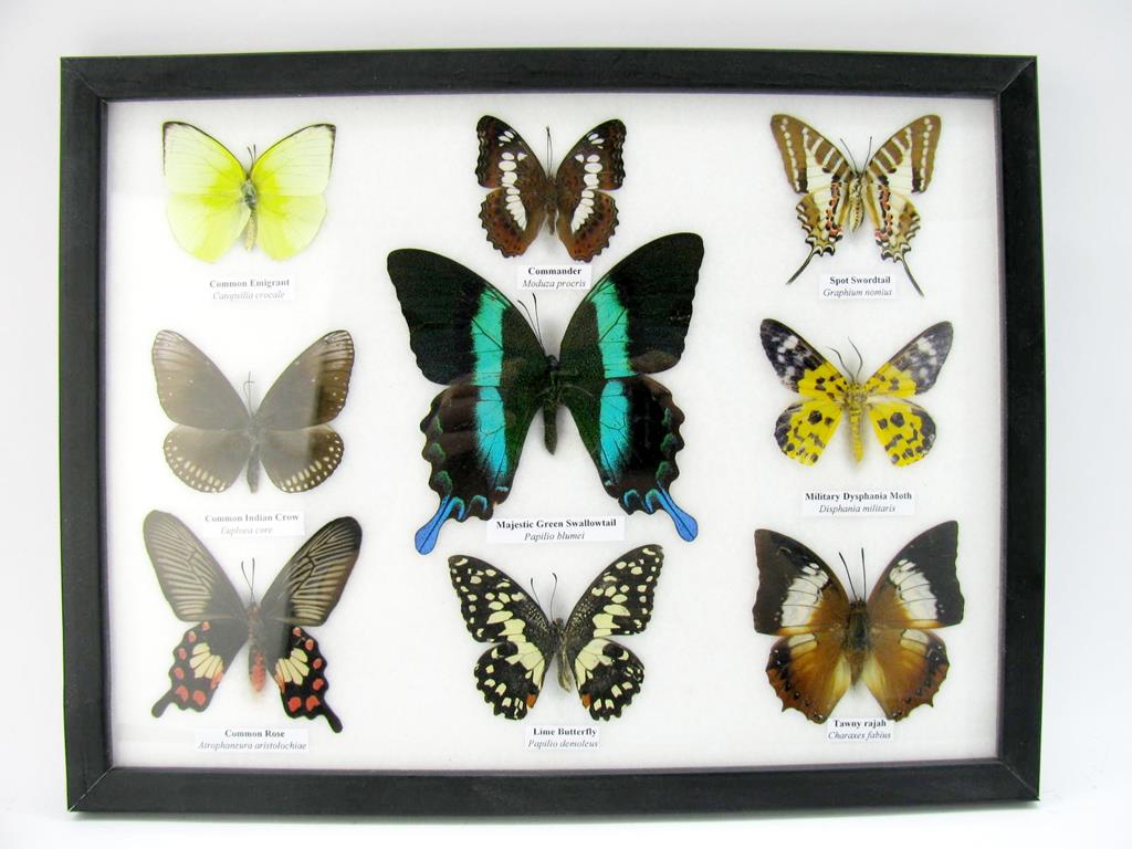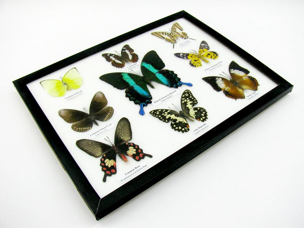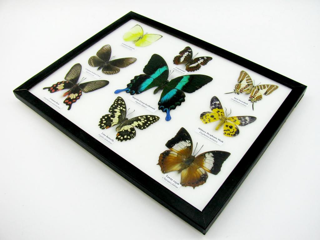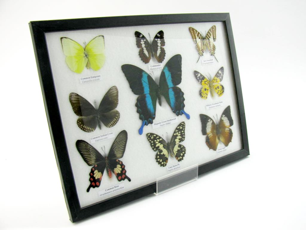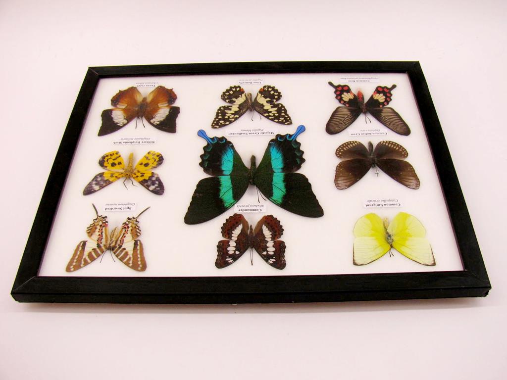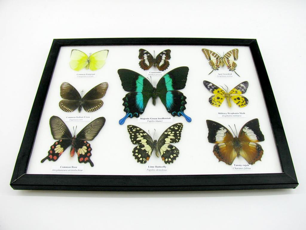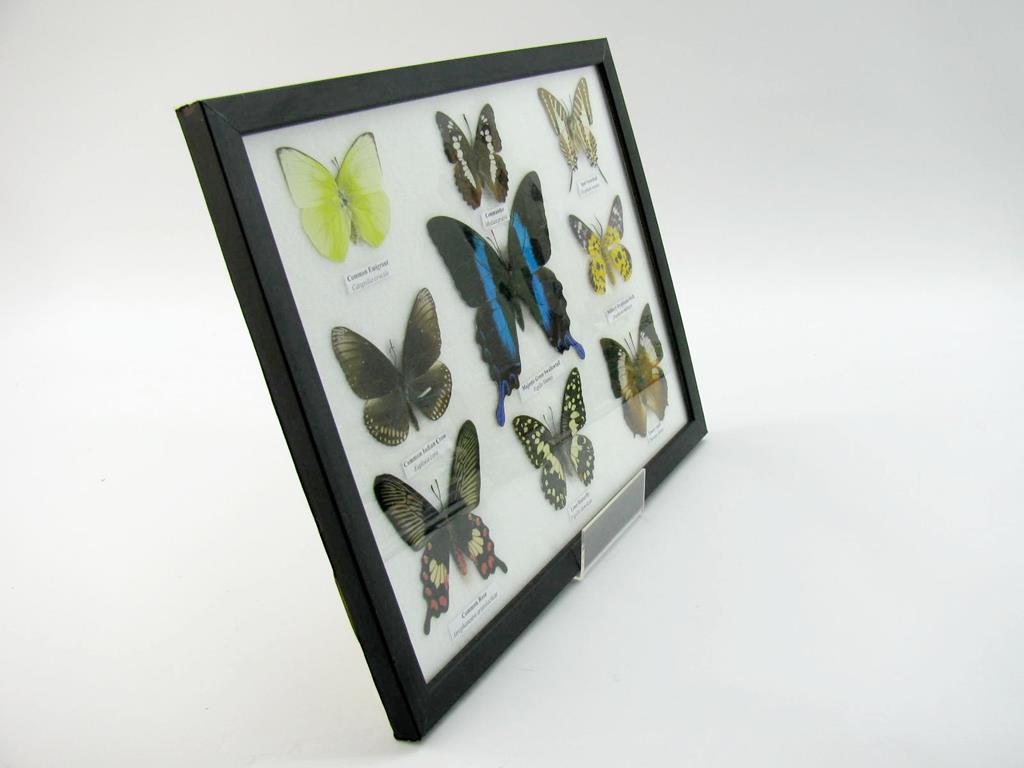 Wunderschöne Schmetterlingssammlung im Bilderrahmen mit 9 echten Schmetterlingen – A-09-blumei-02