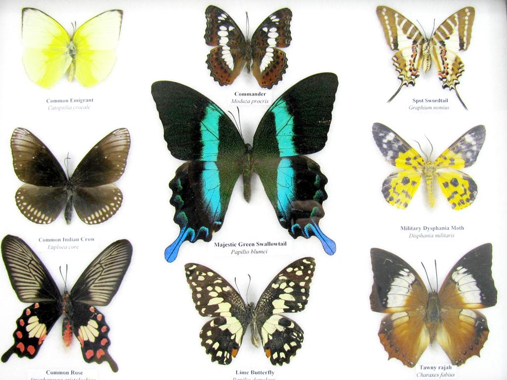 Wunderschöne, echte, präparierte Schmetterlinge als Wandbild im Schaukasten in perfekter Museumsqualität kaufen Sie hier