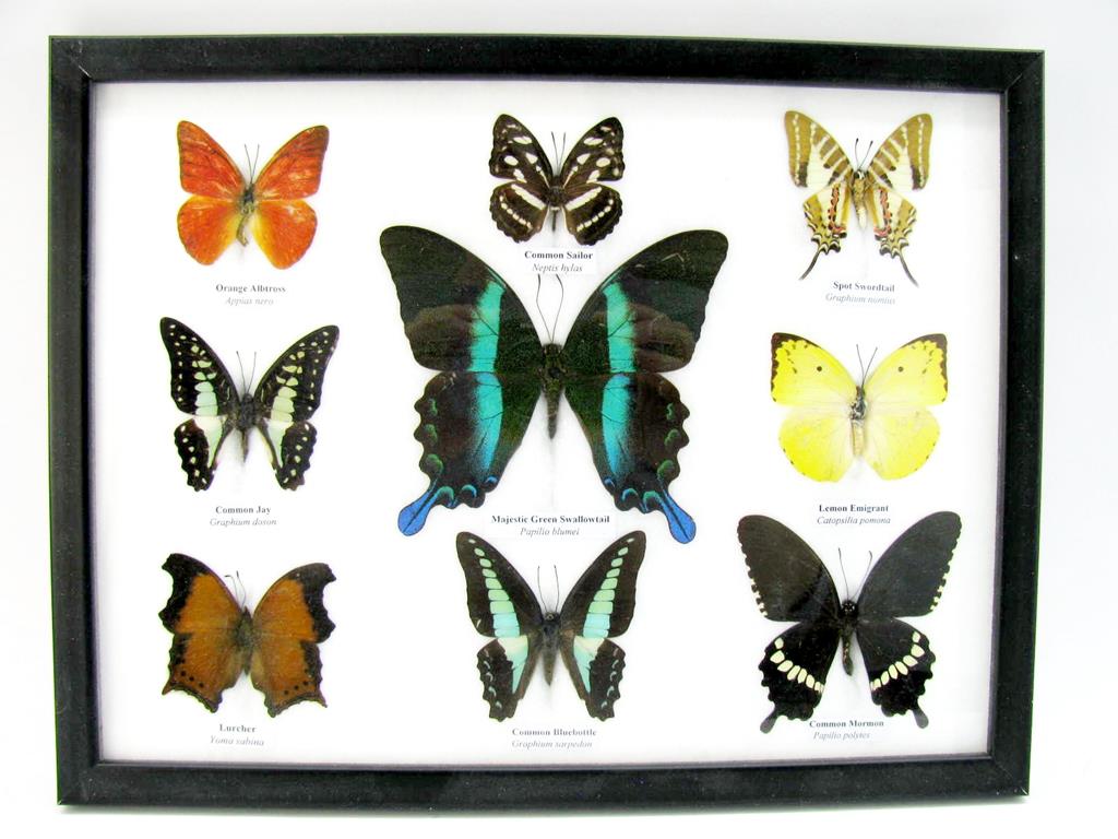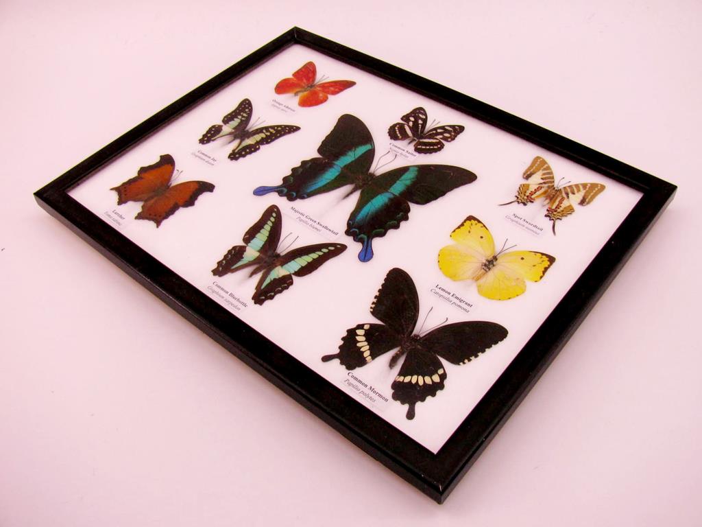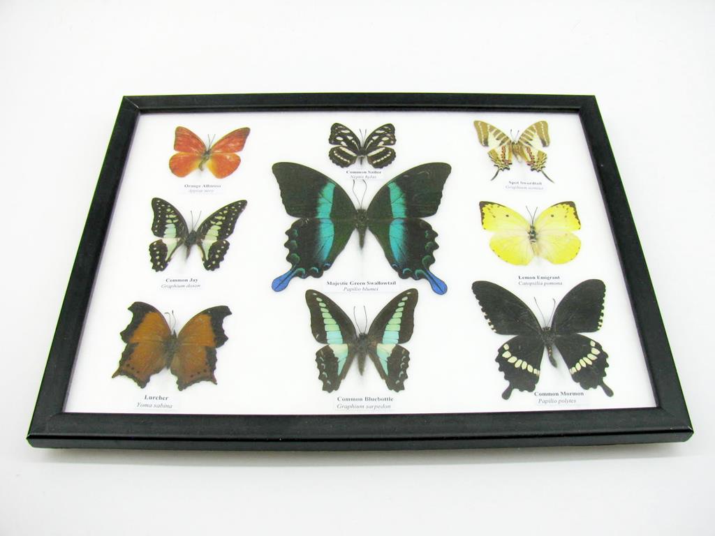 Wunderschöne Schmetterlingssammlung im Bilderrahmen mit 9 echten Schmetterlingen – A-09-blumei-04