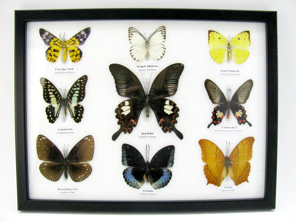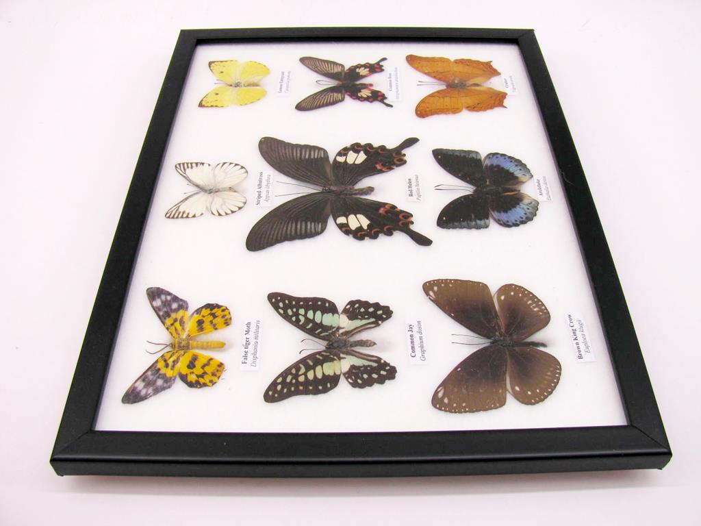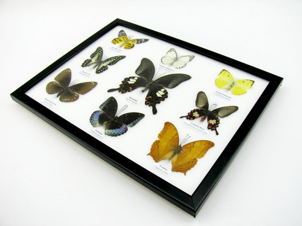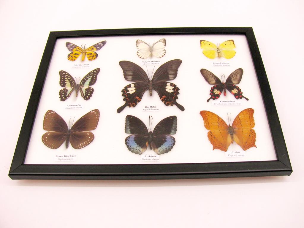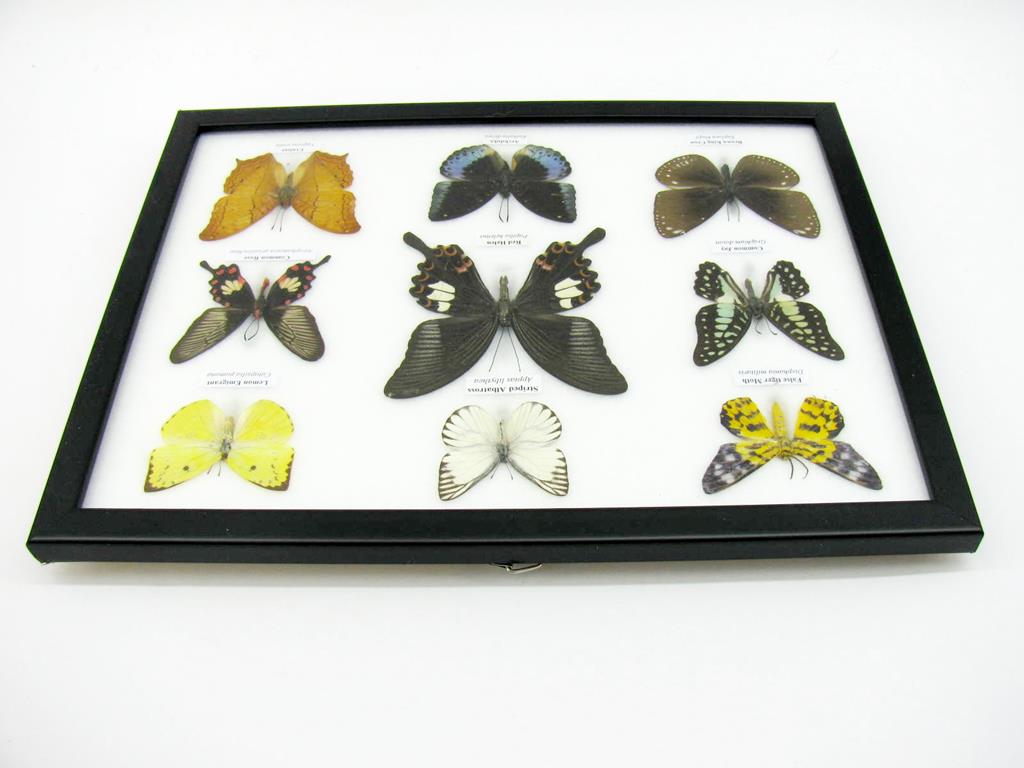 Wunderschöne Schmetterlingssammlung im Bilderrahmen mit 9 echten Schmetterlingen – A-09-helen-01