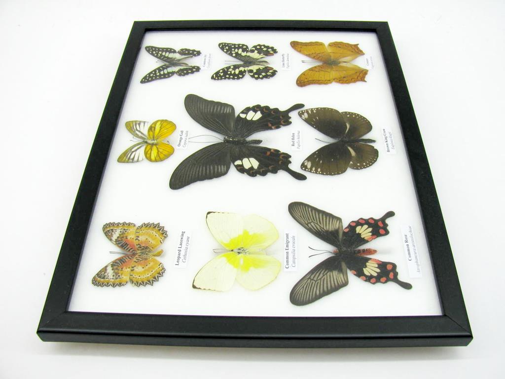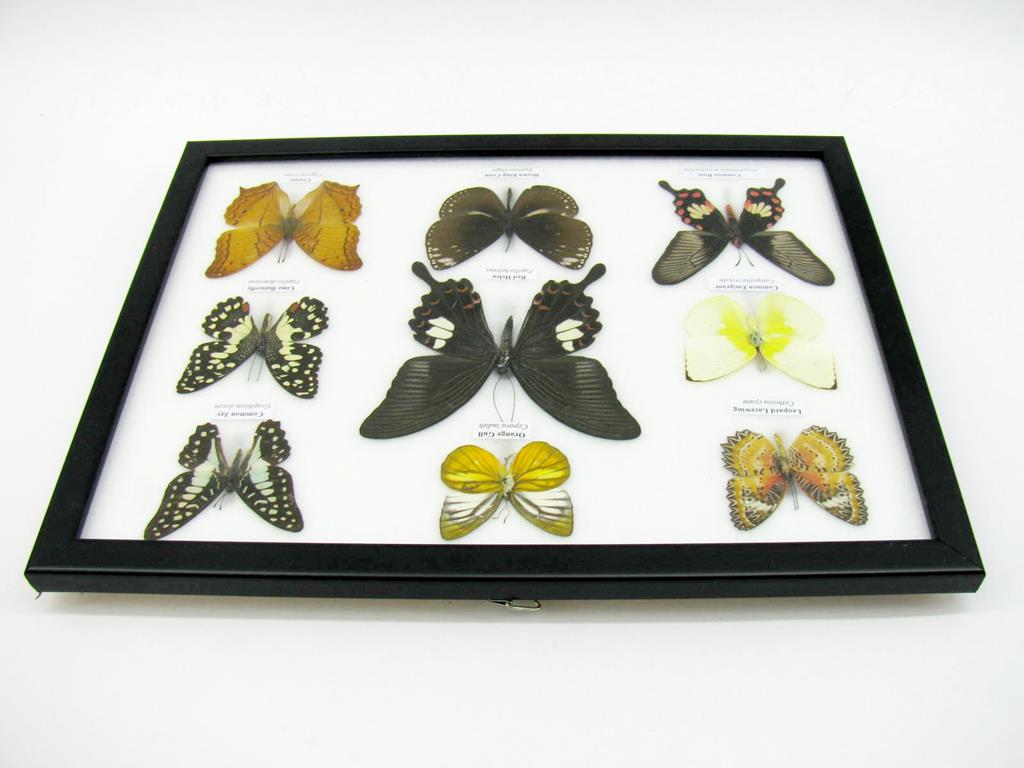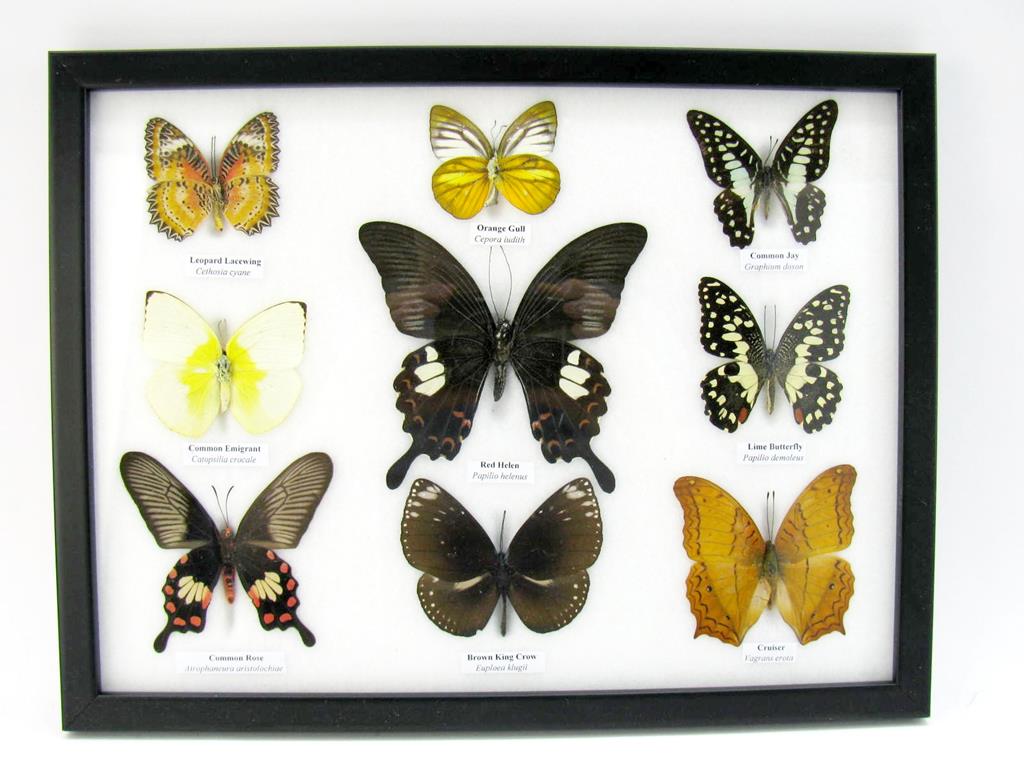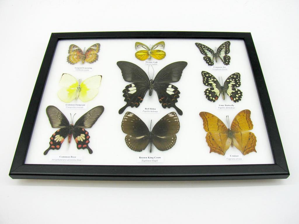 Wunderschöne Schmetterlingssammlung im Bilderrahmen mit 9 echten Schmetterlingen – A-09-helen-03