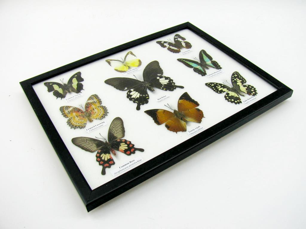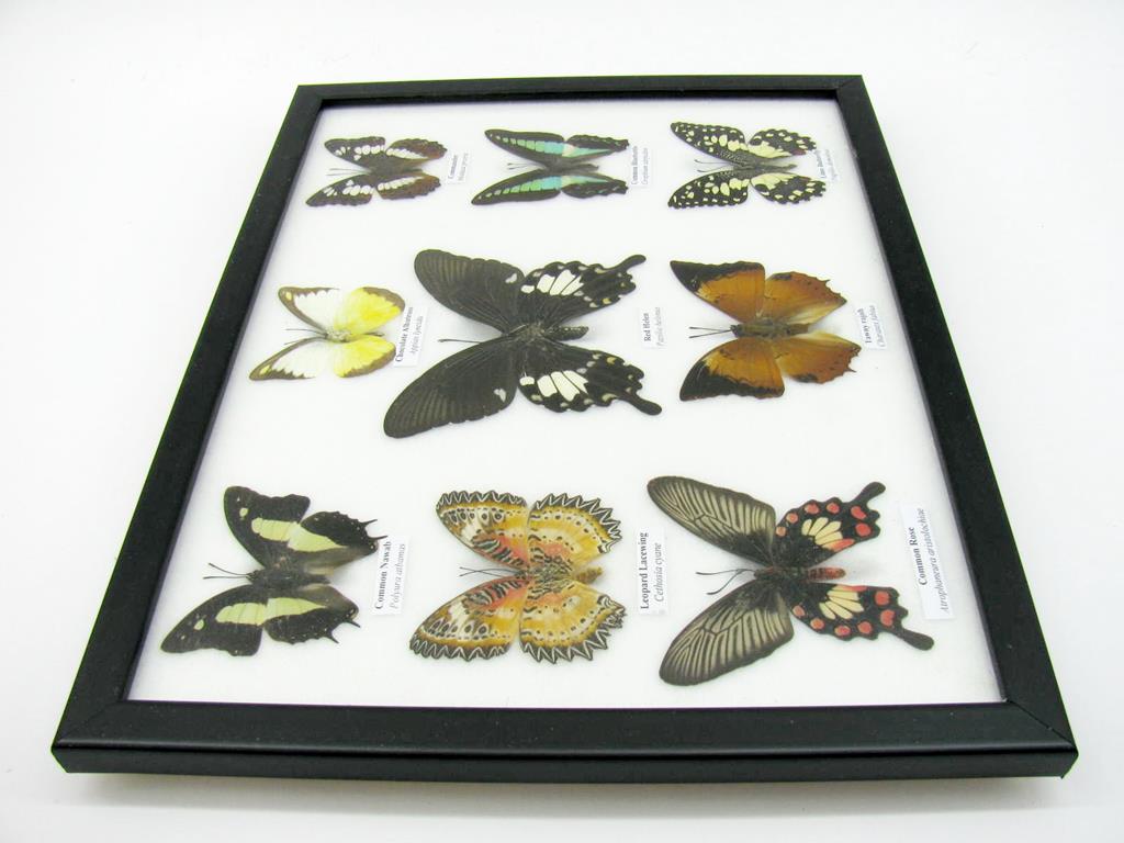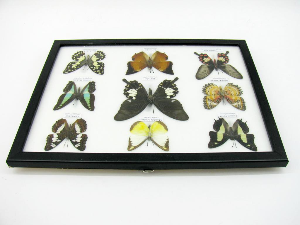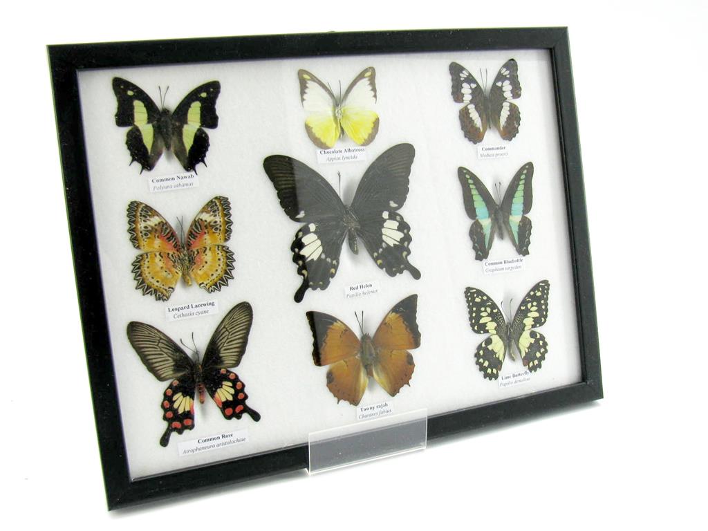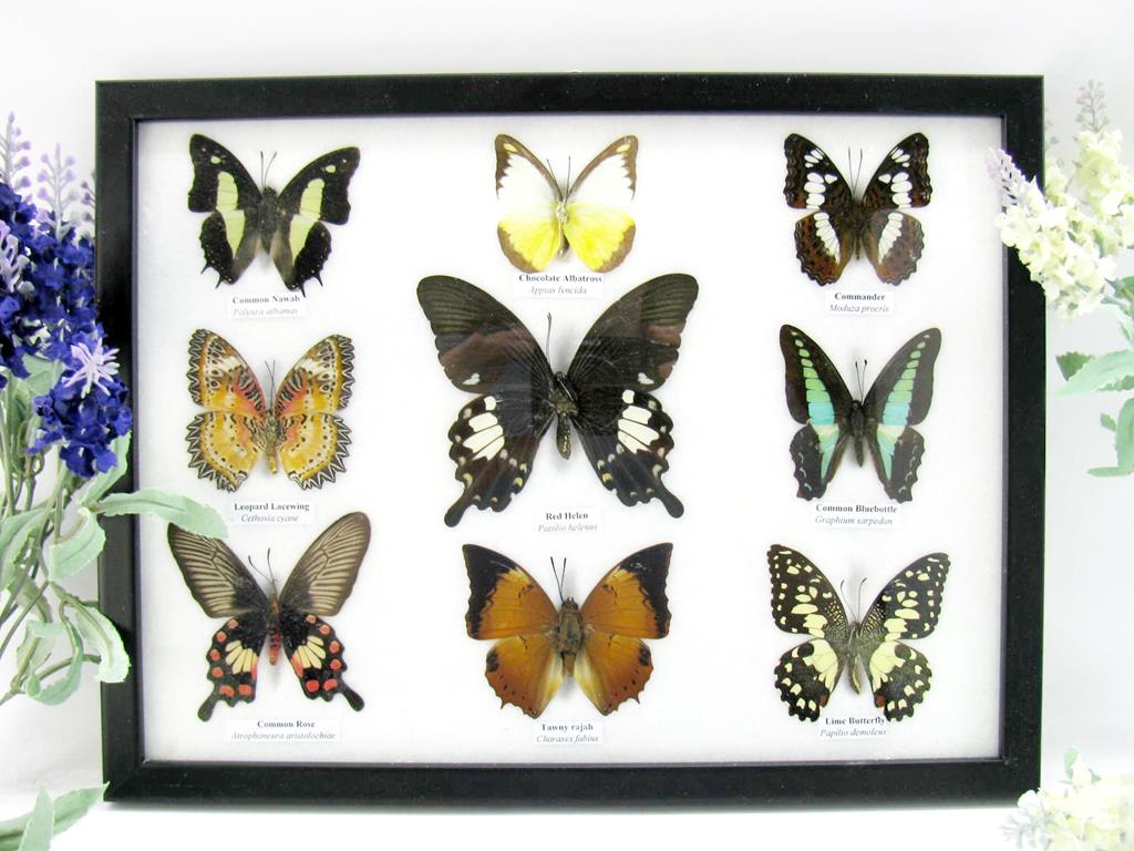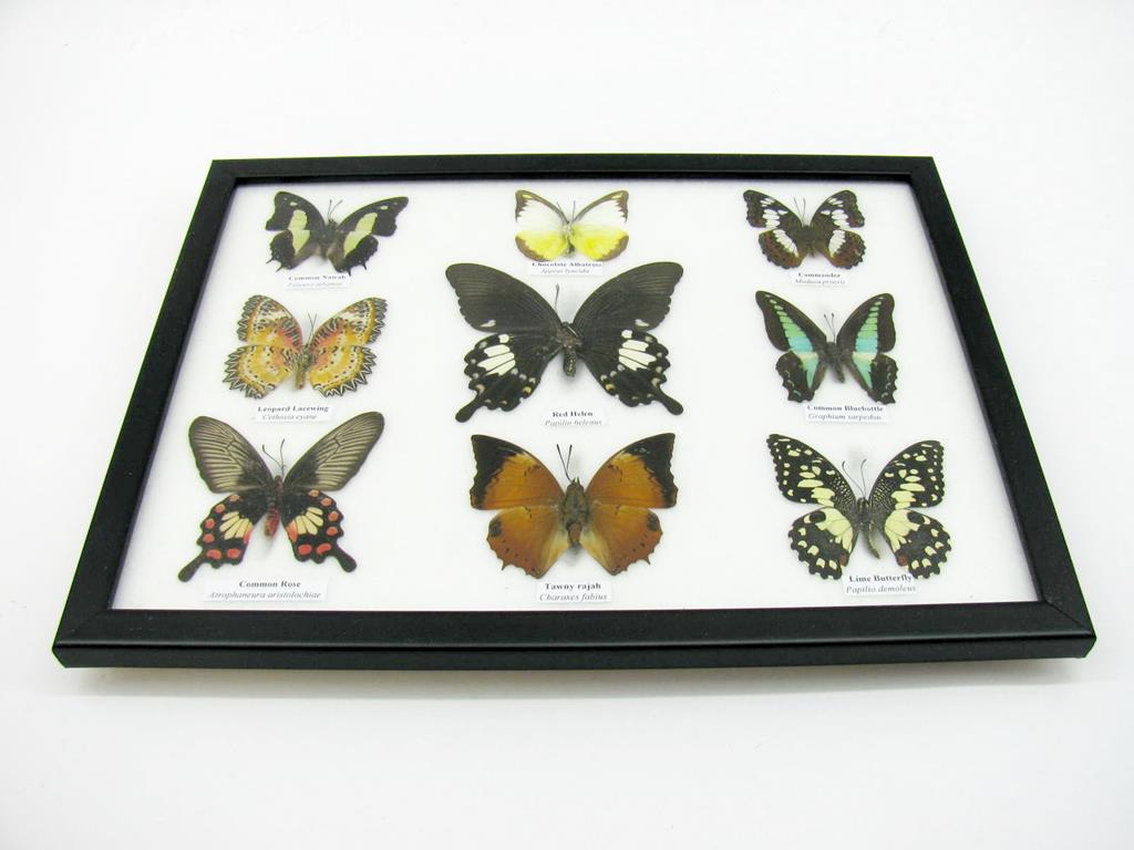 Wunderschöne Schmetterlingssammlung im Bilderrahmen mit 9 echten Schmetterlingen – A-09-helen-05