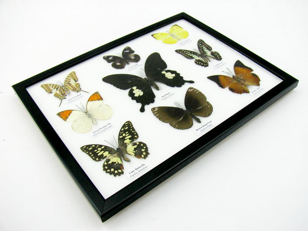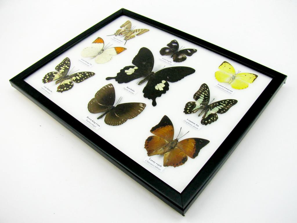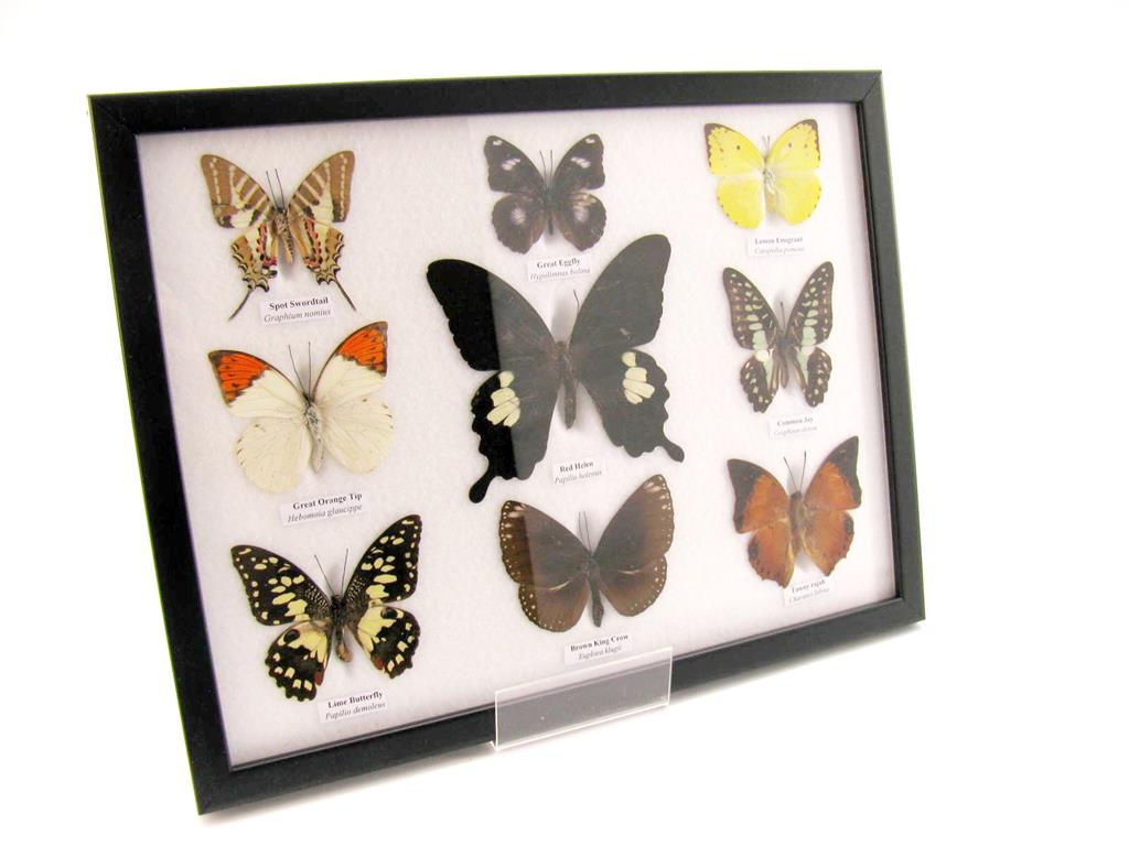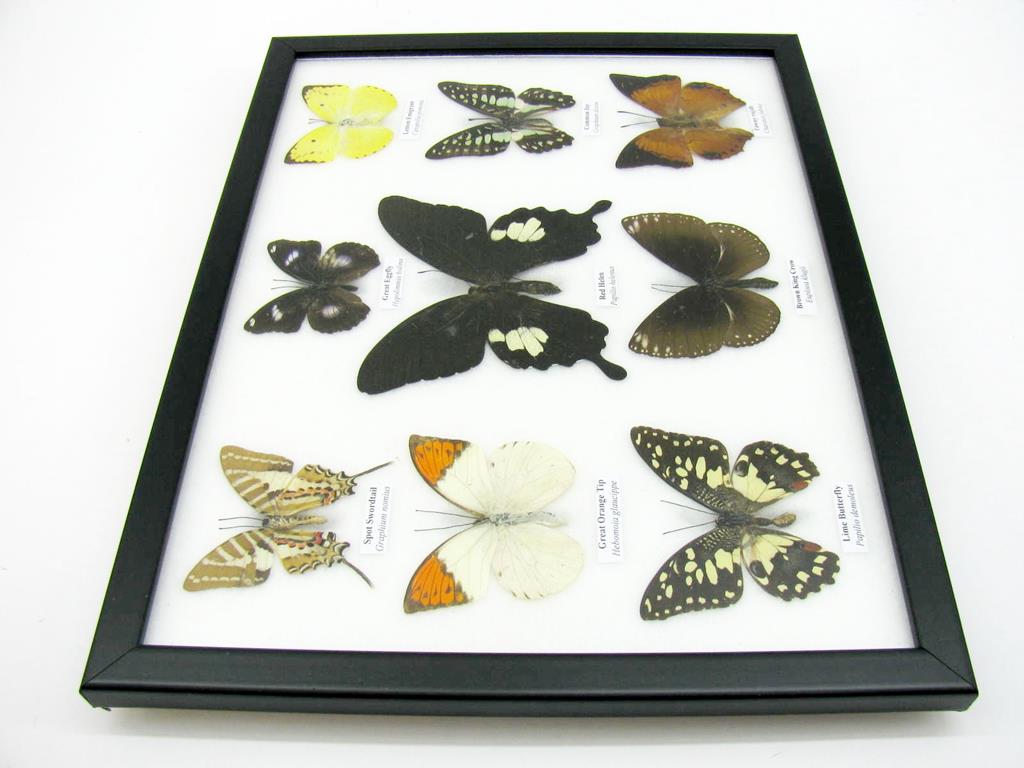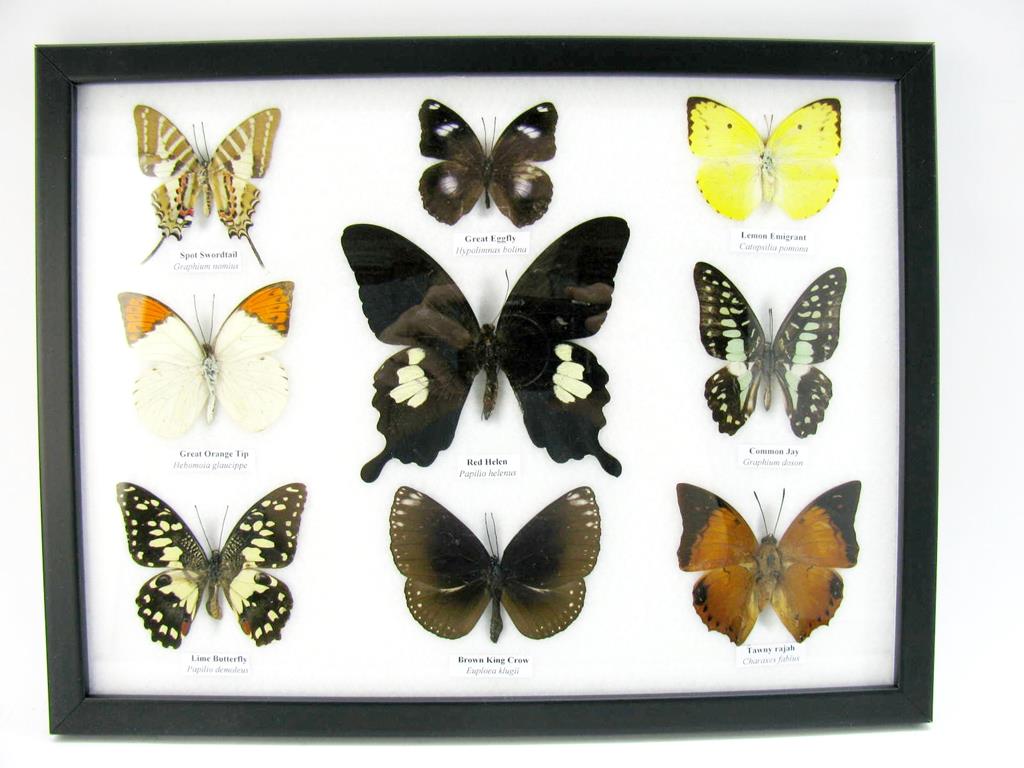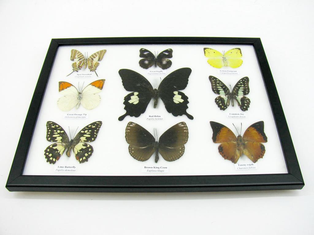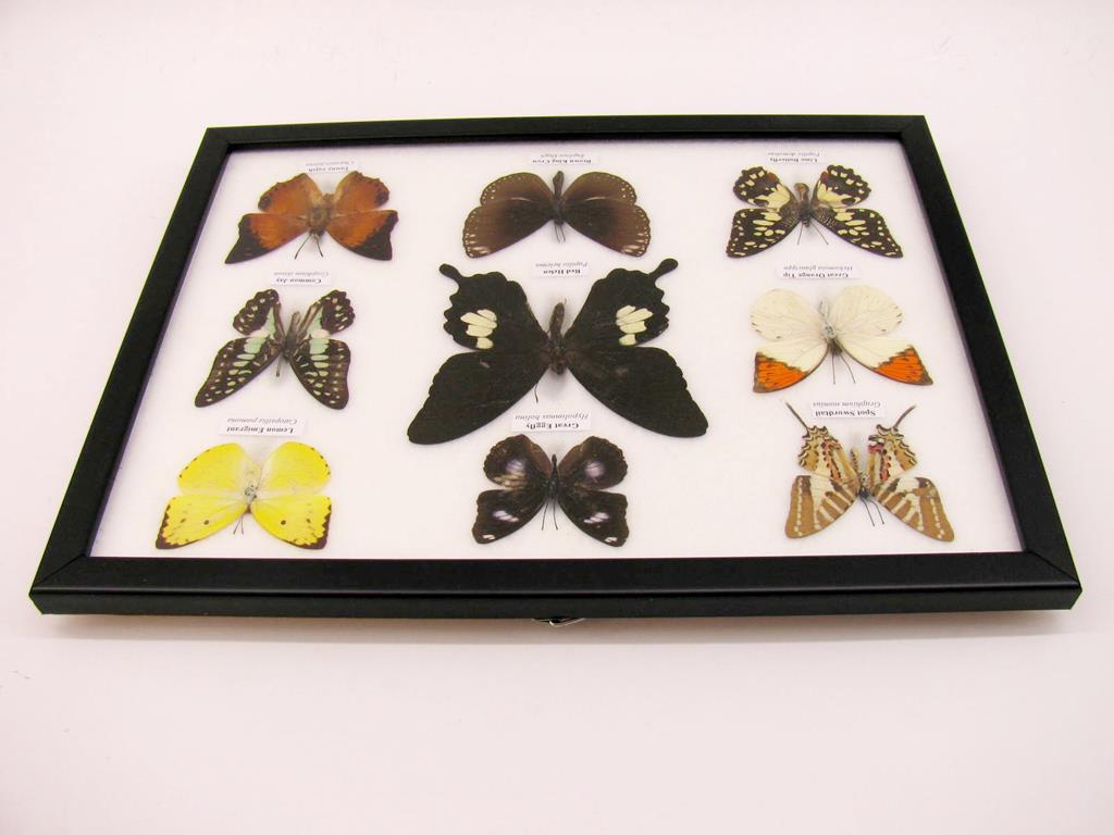 Wunderschöne Schmetterlingssammlung im Bilderrahmen mit 9 echten Schmetterlingen – A-09-helen-06