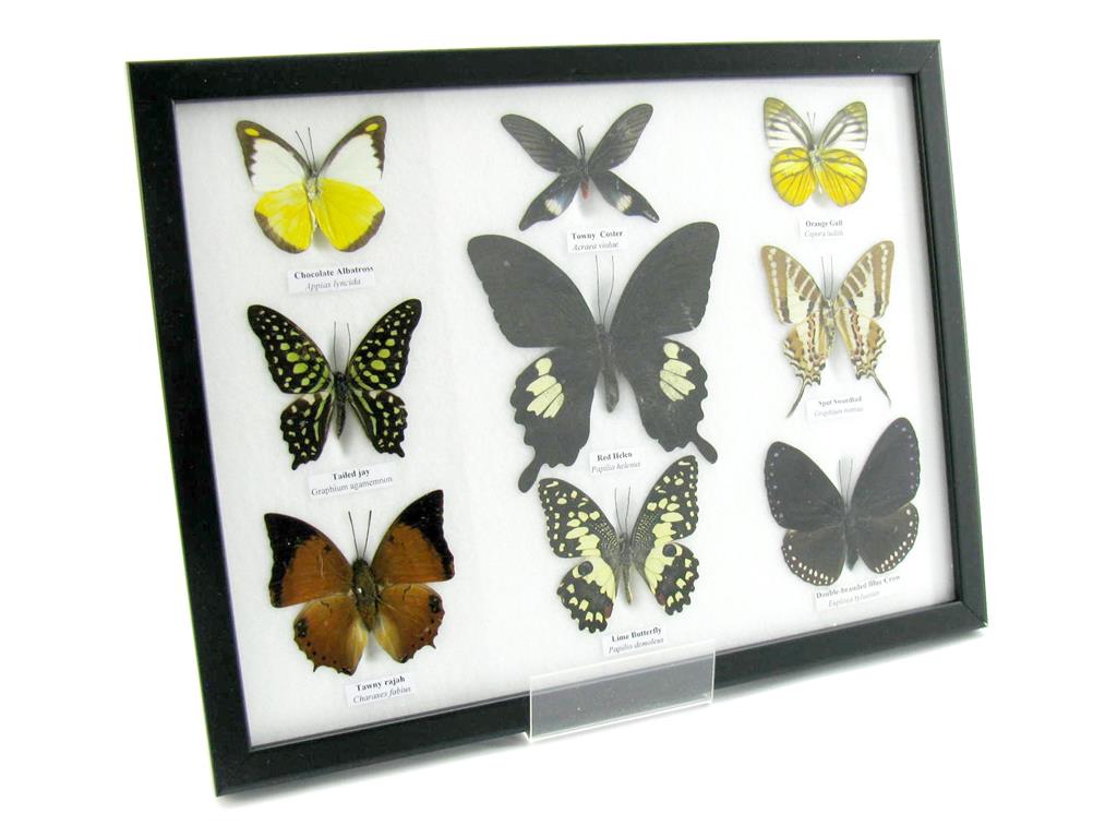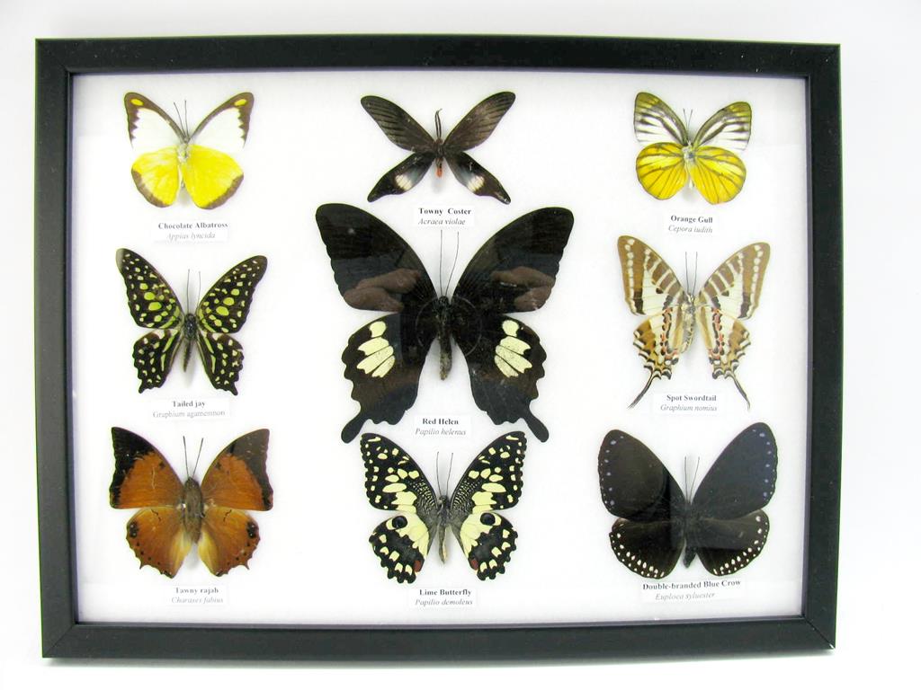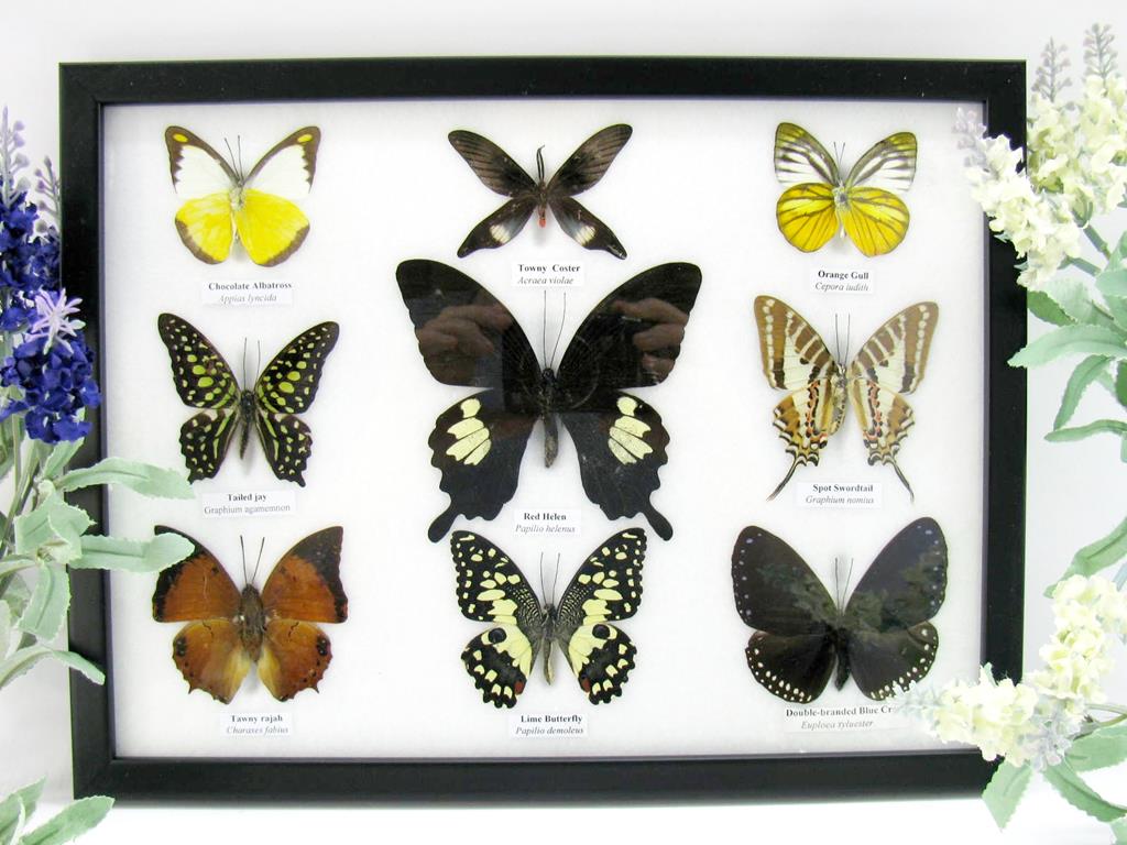 Wunderschöne Schmetterlingssammlung im Bilderrahmen mit 9 echten Schmetterlingen – A-09-helen-09