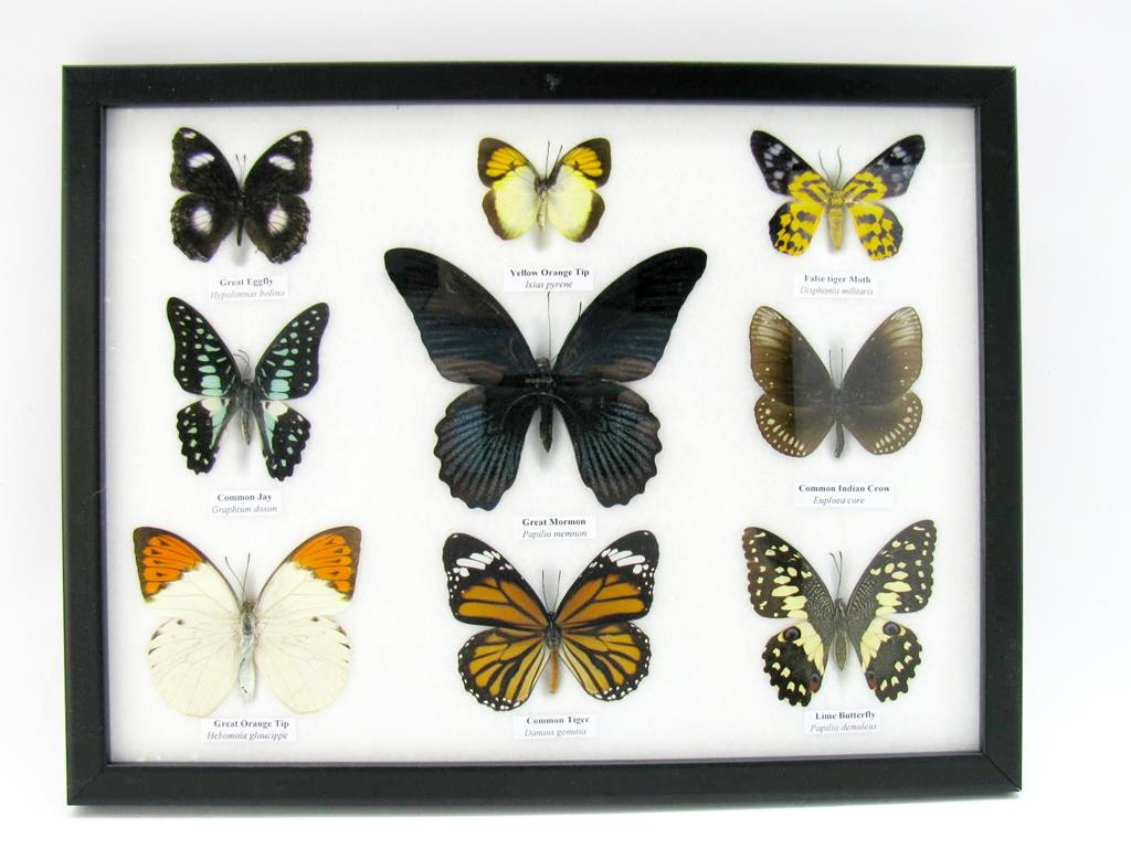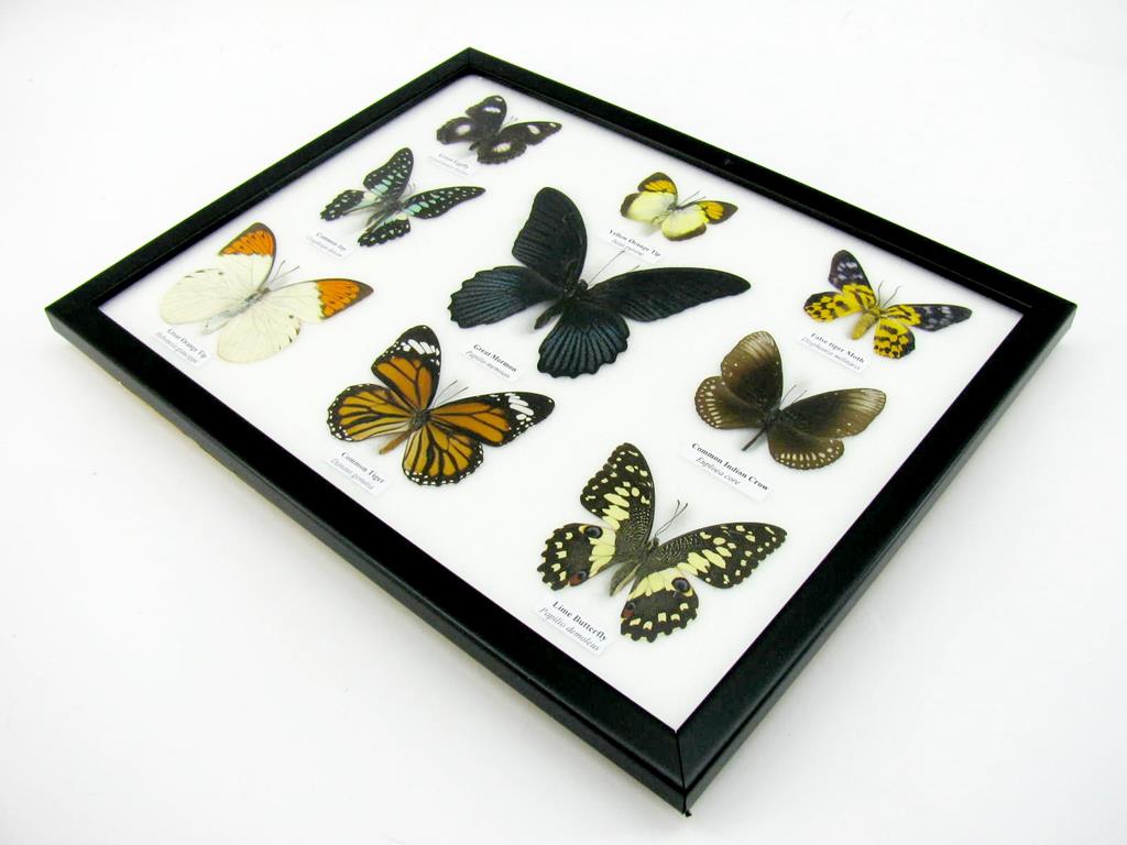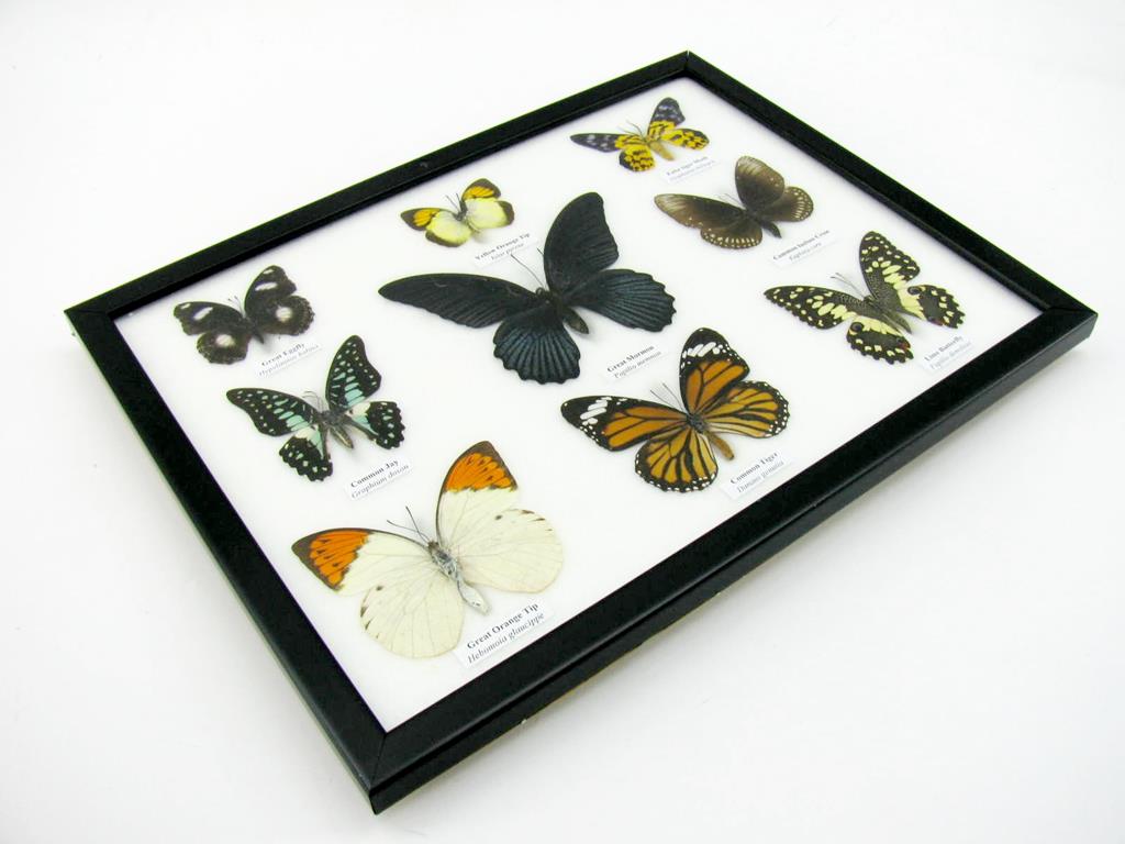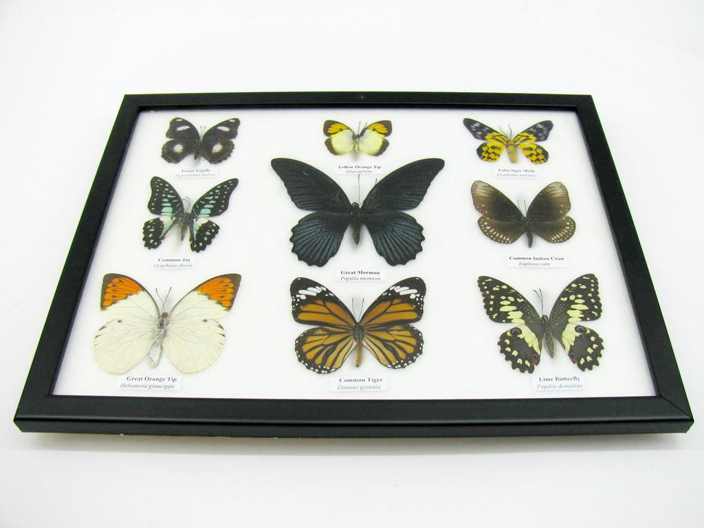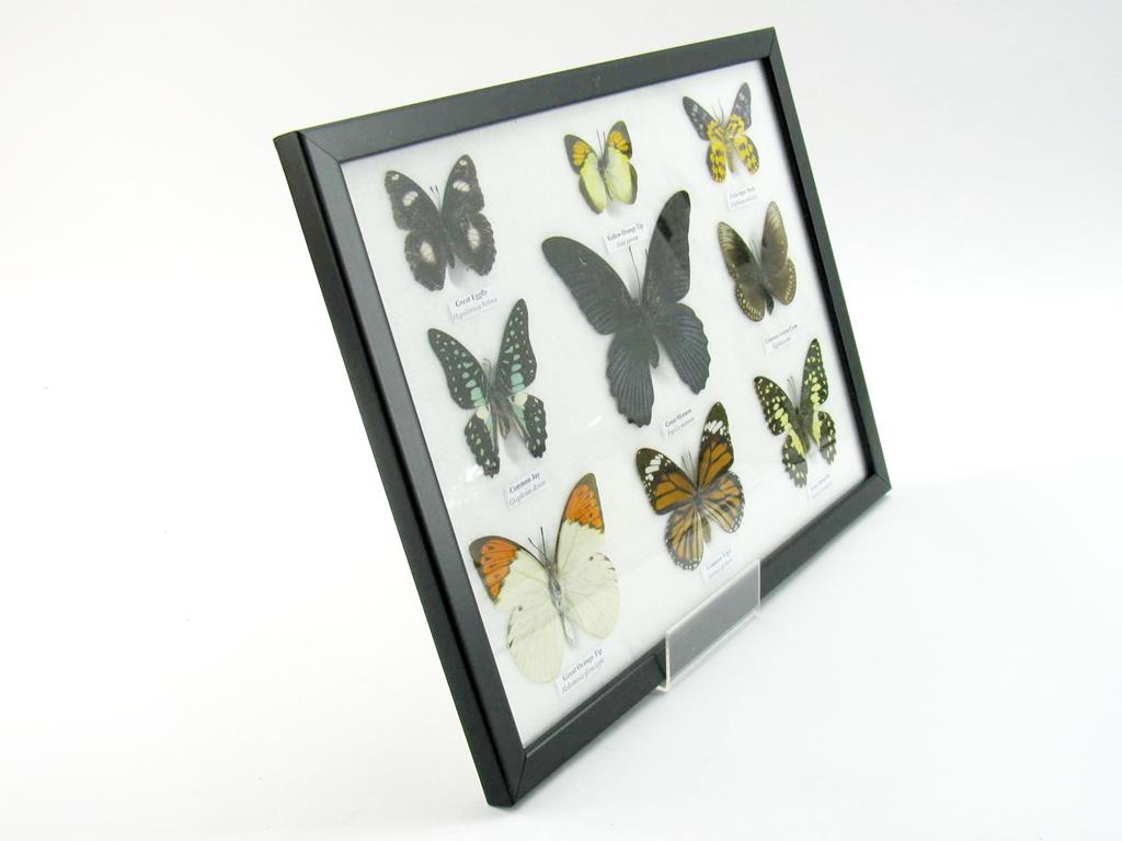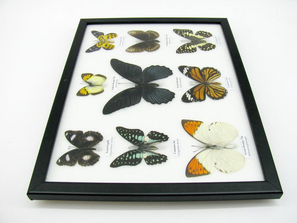 Wunderschöne Schmetterlingssammlung im Bilderrahmen mit 9 echten Schmetterlingen – A-09-mormon-02