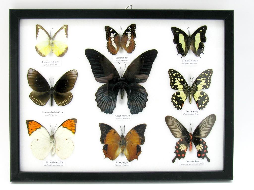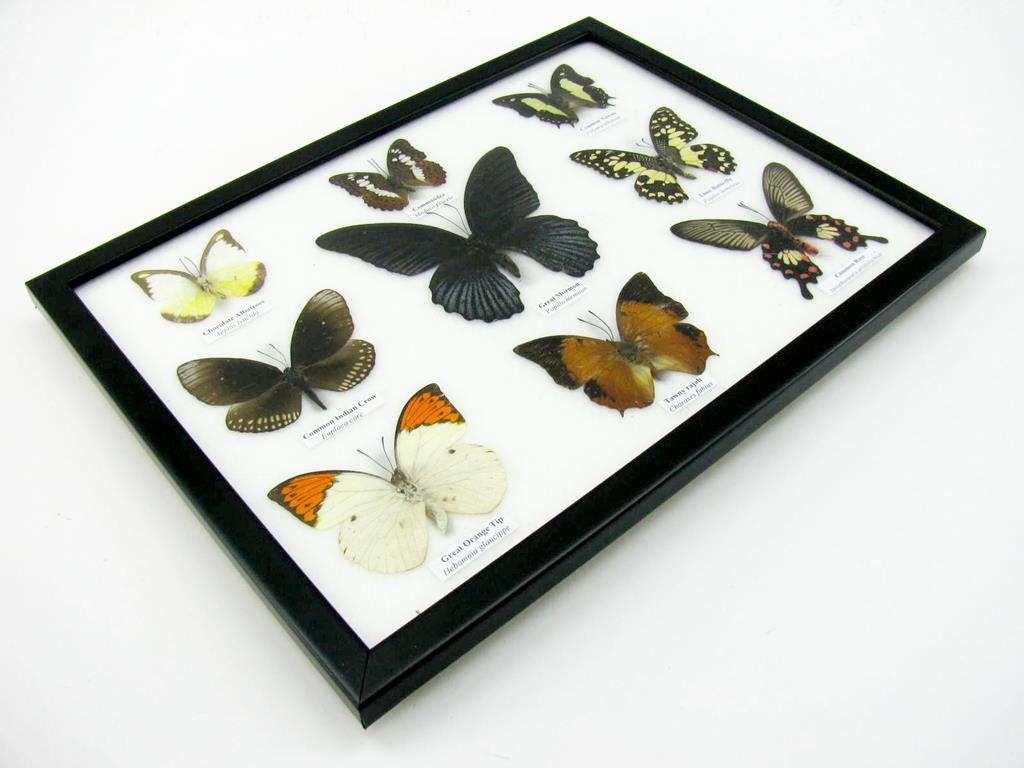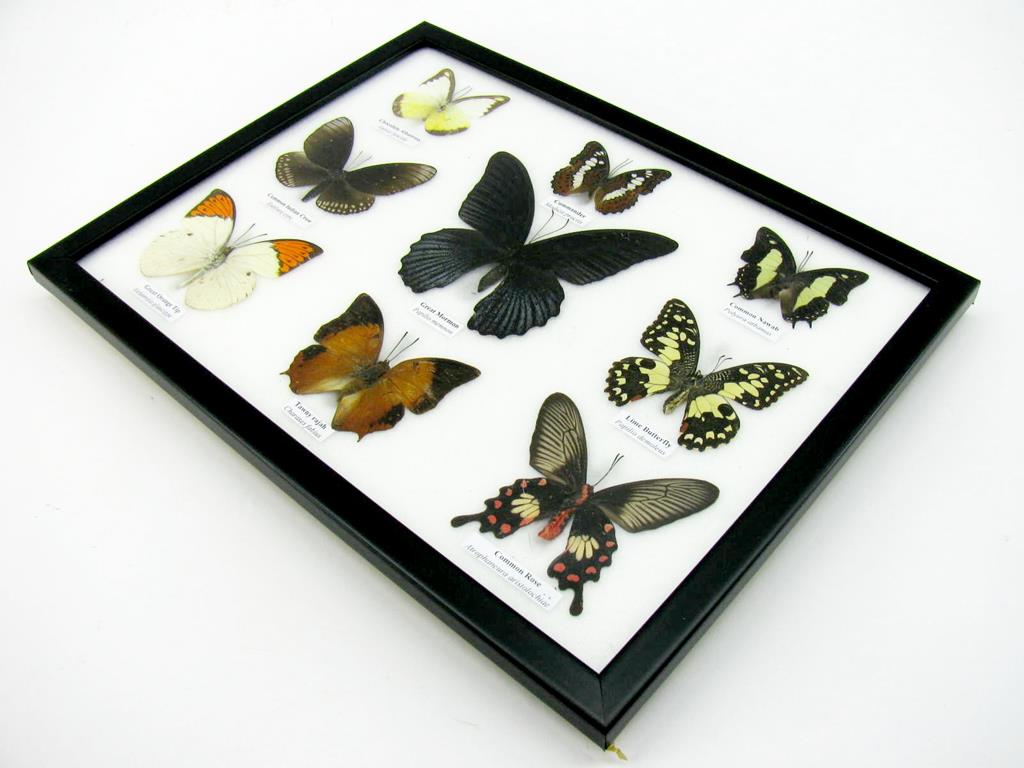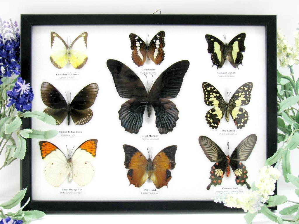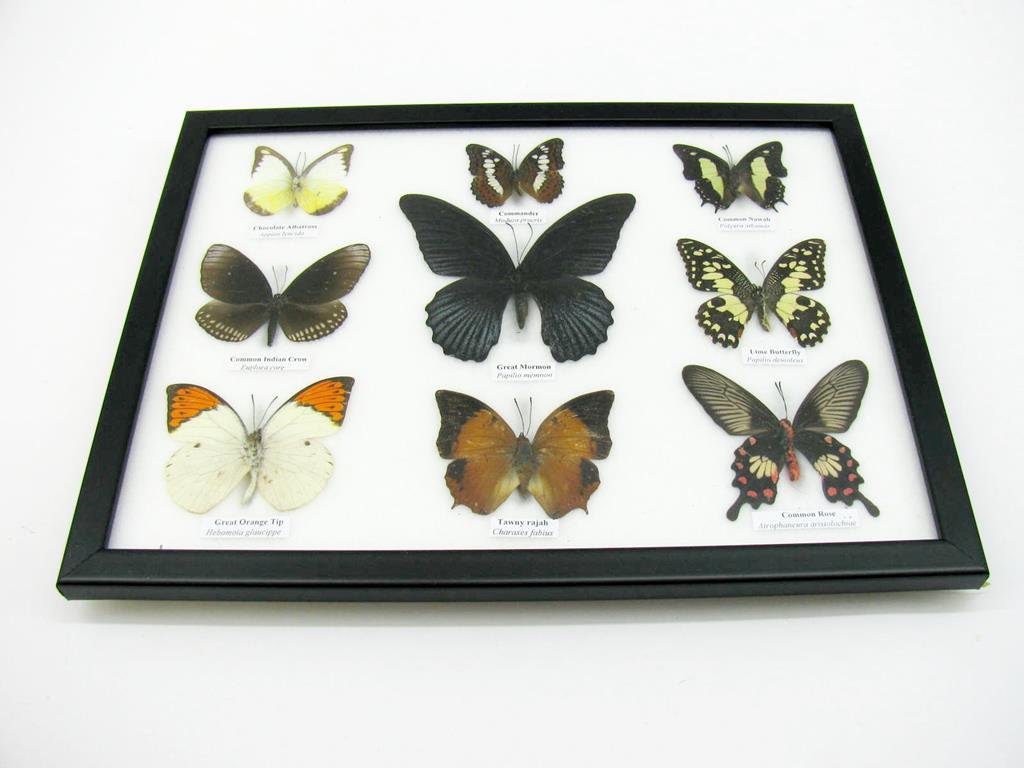Wunderschöne Schmetterlingssammlung im Bilderrahmen mit 9 echten Schmetterlingen – A-09-mormon-04