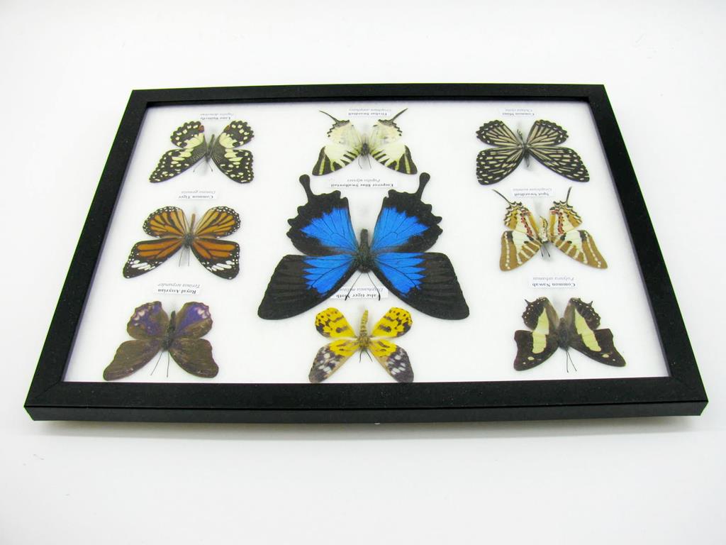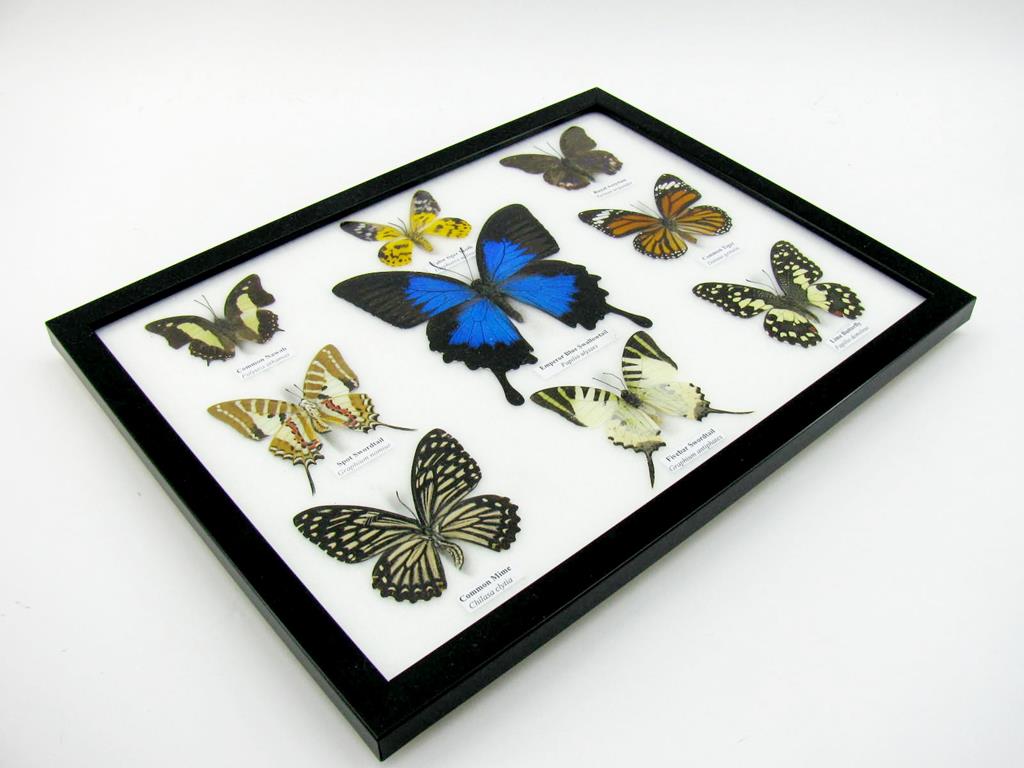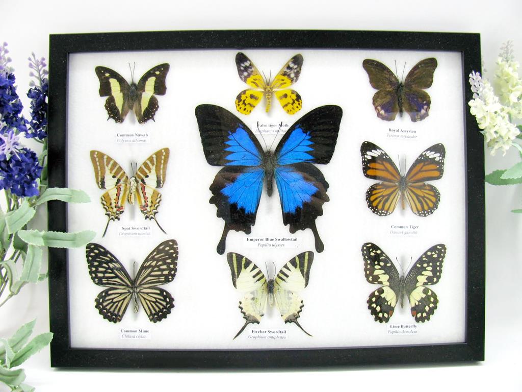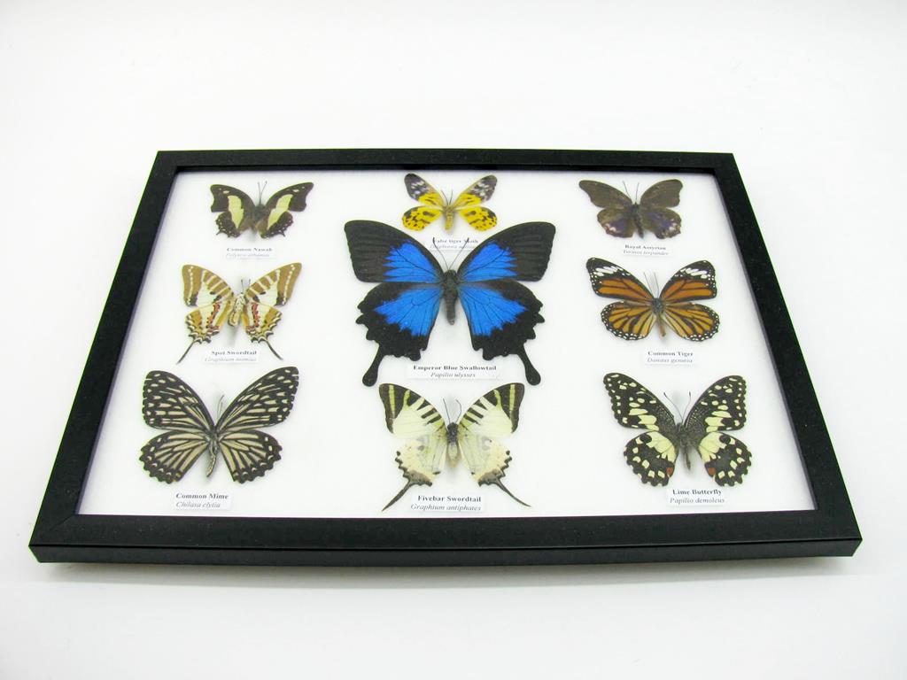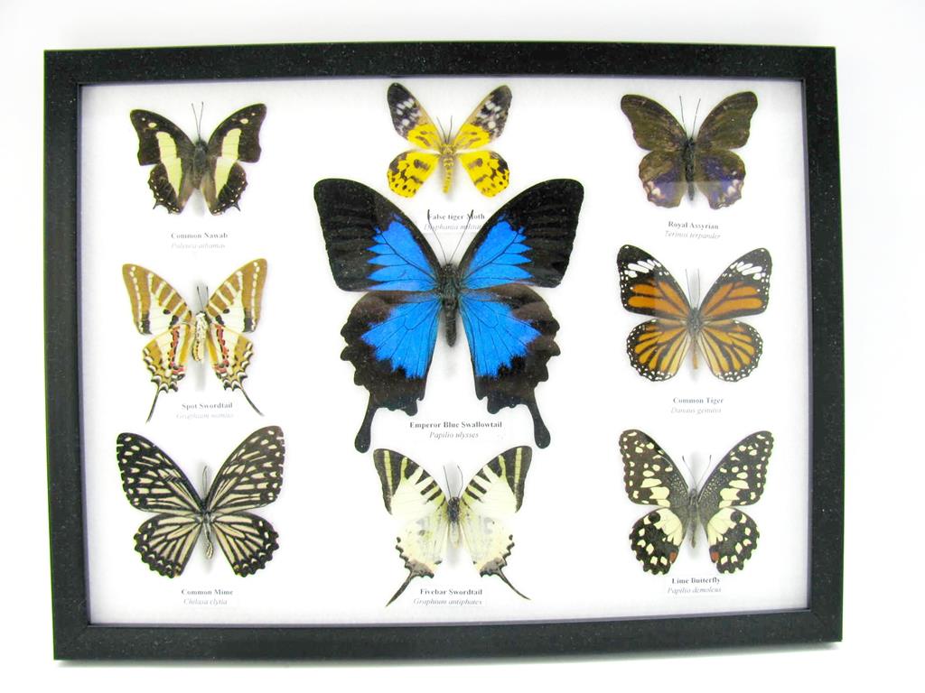 Wunderschöne Schmetterlingssammlung im Bilderrahmen mit 9 echten Schmetterlingen – A-09-ulysses-01