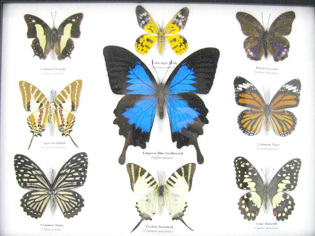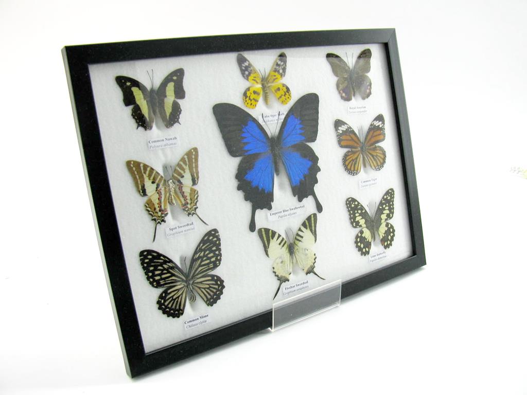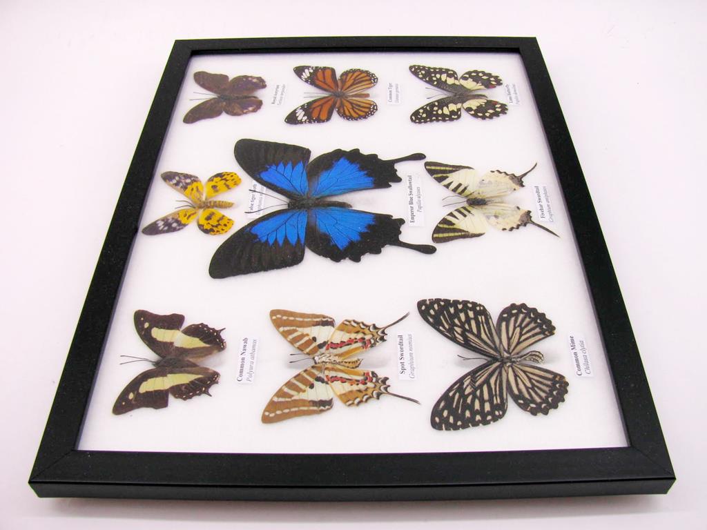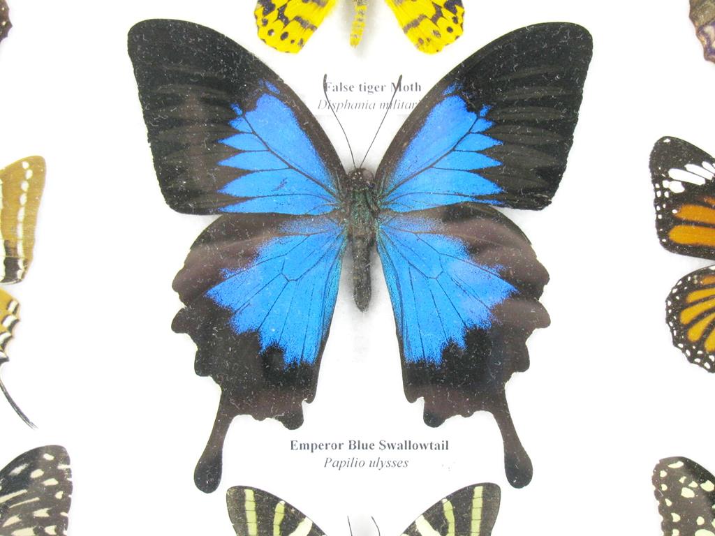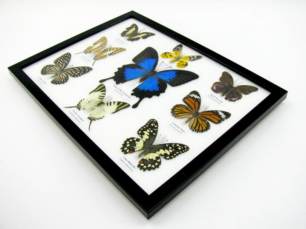Wunderschöne Schmetterlingssammlung im Bilderrahmen mit 9 echten Schmetterlingen – A-09-ulysses-01