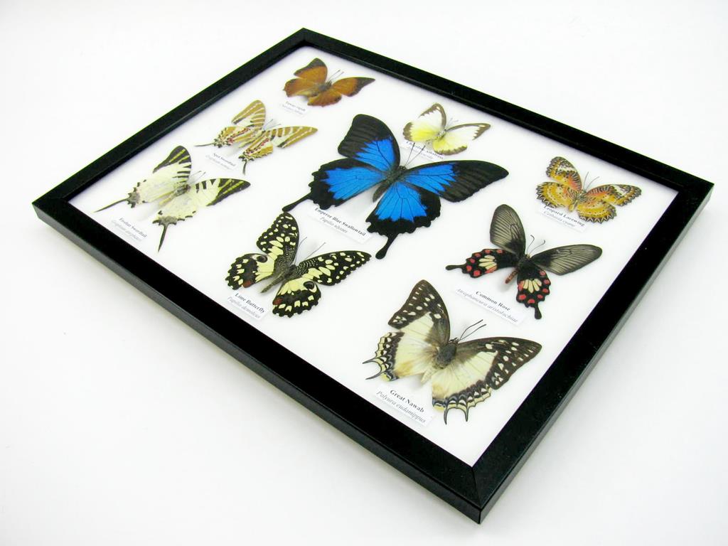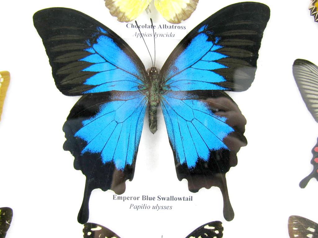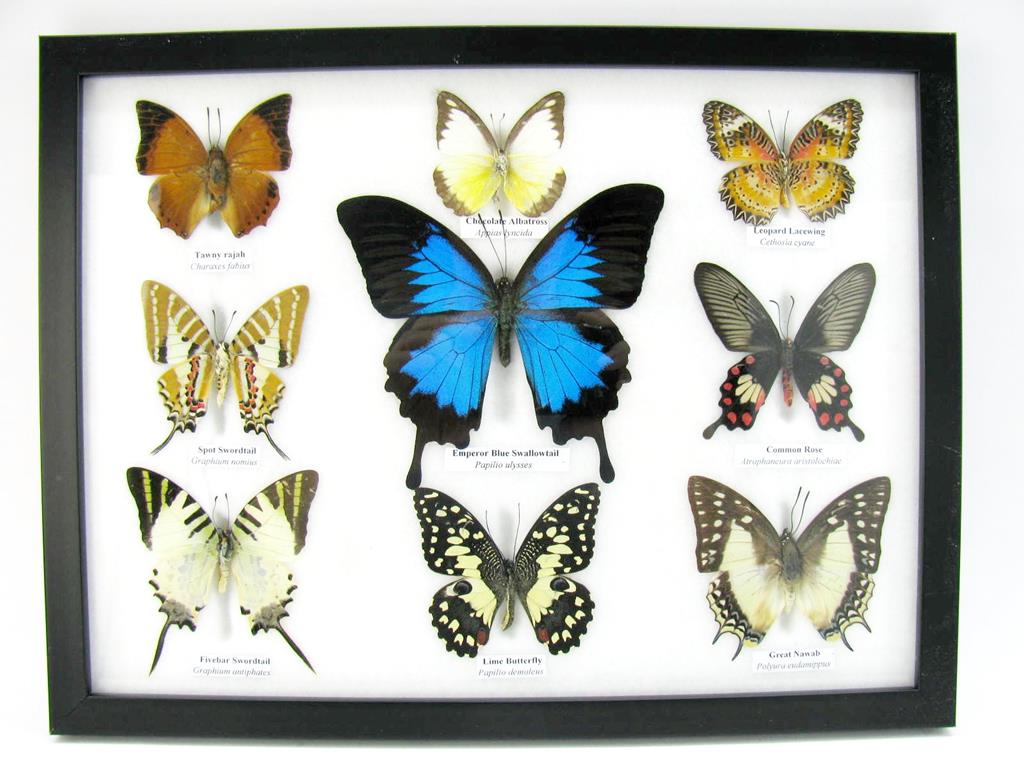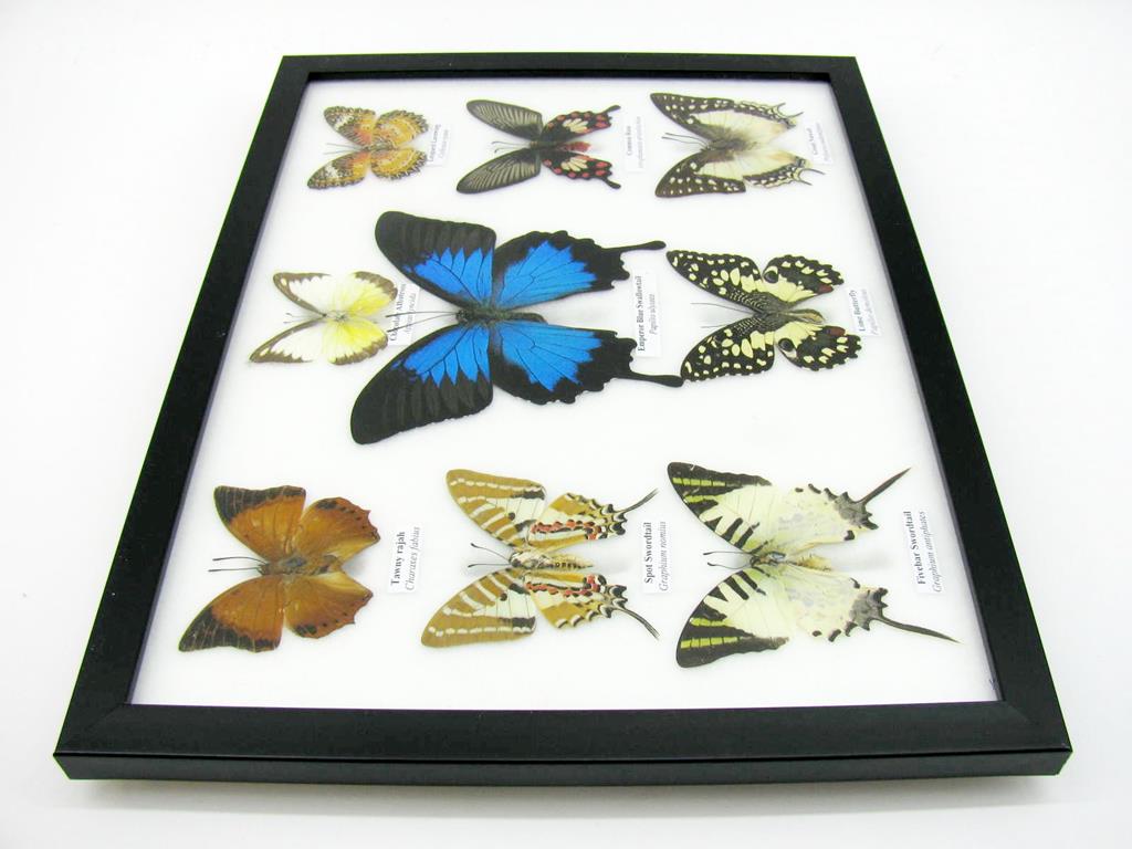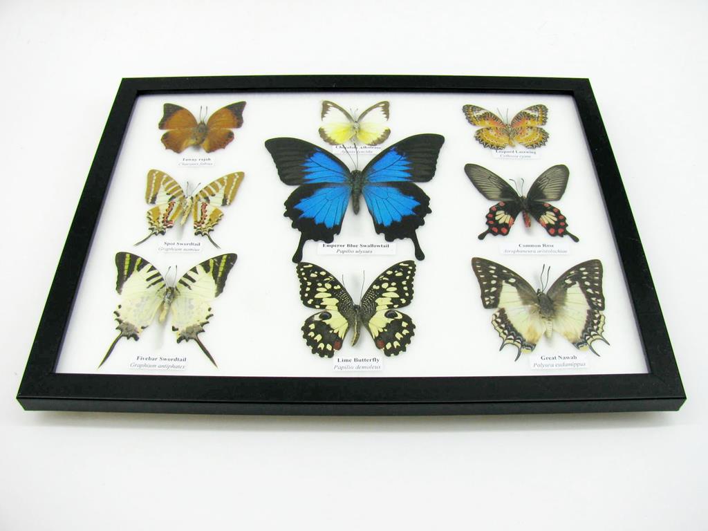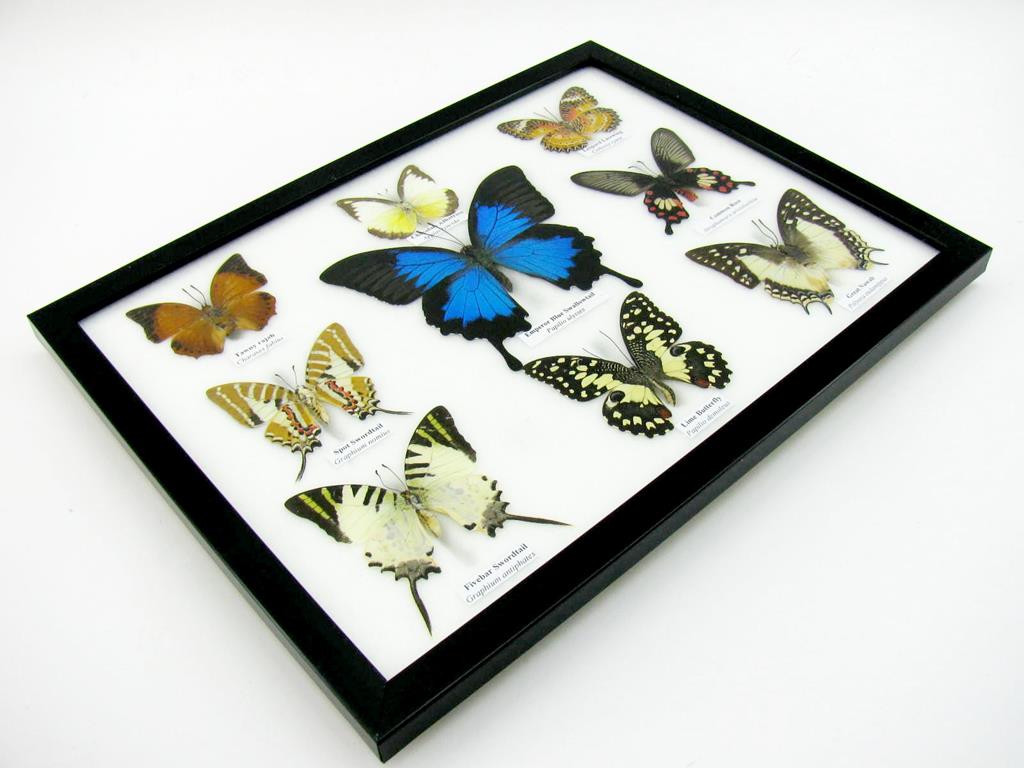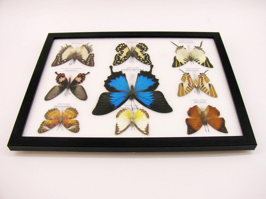 Wunderschöne Schmetterlingssammlung im Bilderrahmen mit 9 echten Schmetterlingen – A-09-ulysses-08