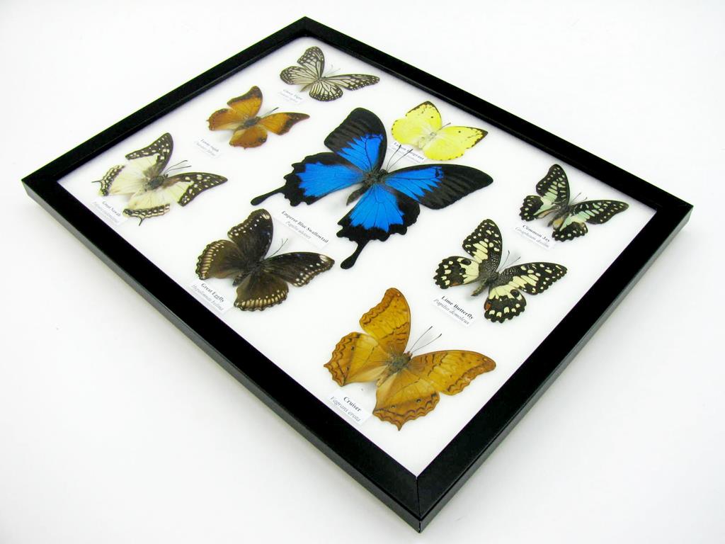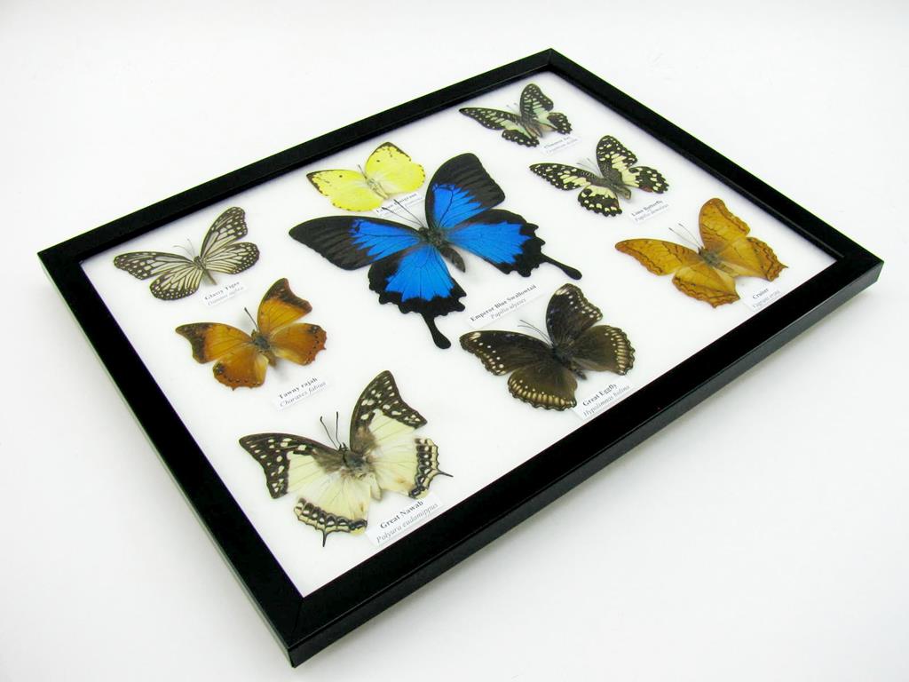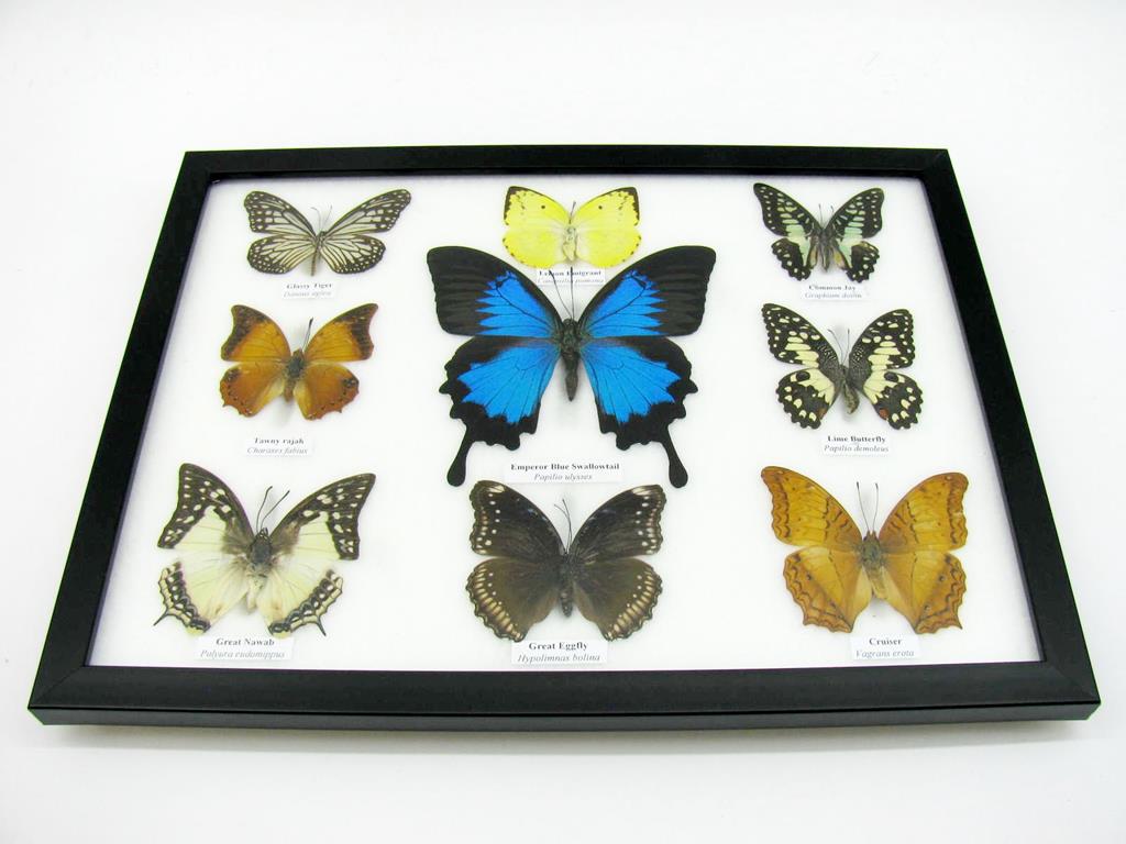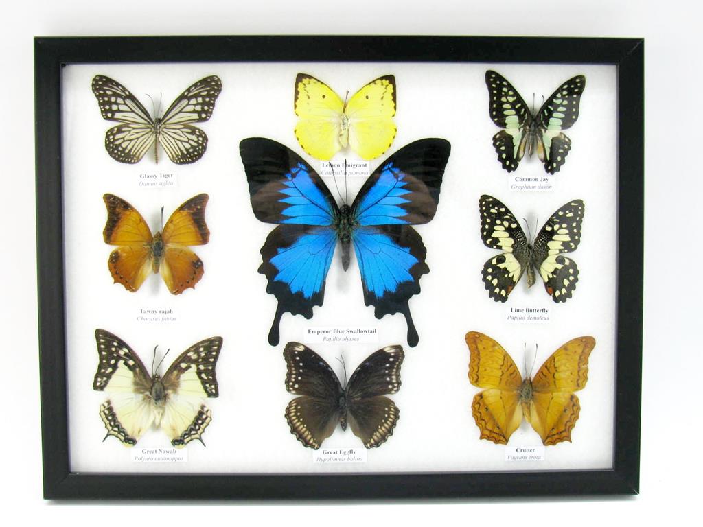 Wunderschöne Schmetterlingssammlung im Bilderrahmen mit 9 echten Schmetterlingen – A-09-ulysses-12