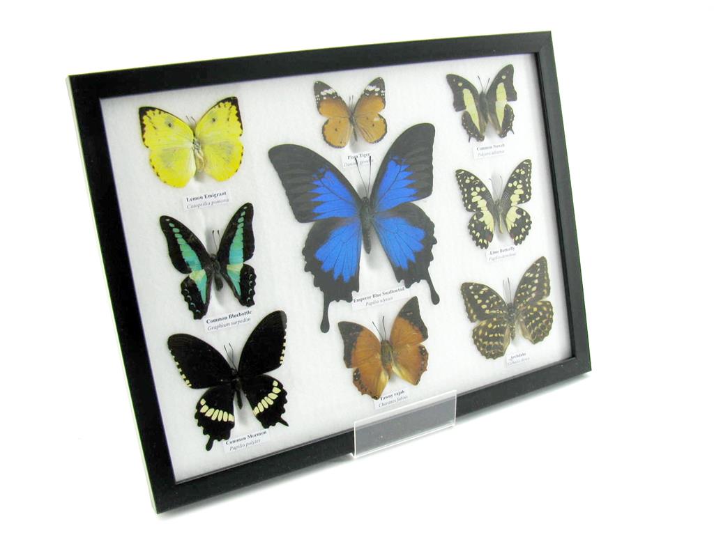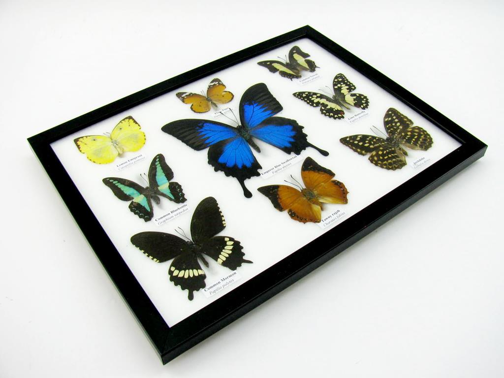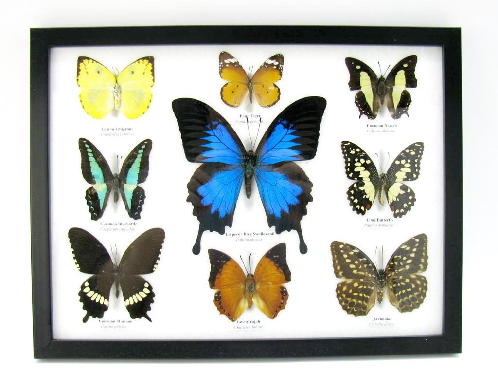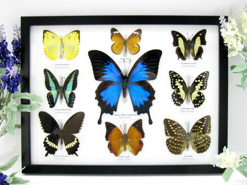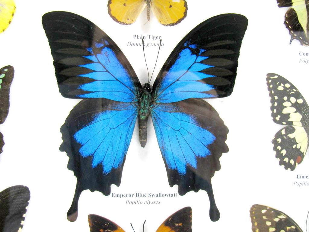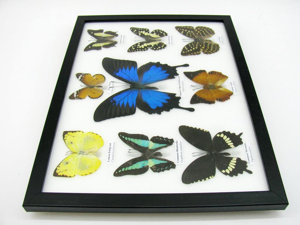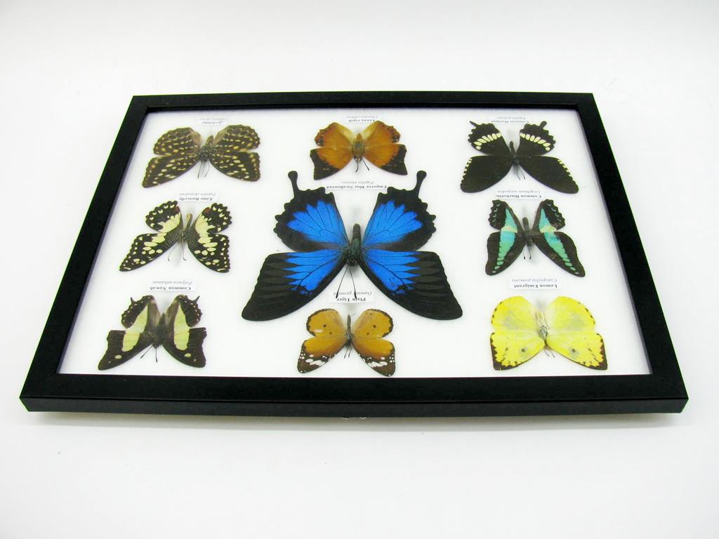 Wunderschöne Schmetterlingssammlung im Bilderrahmen mit 9 echten Schmetterlingen – A-09-ulysses-13