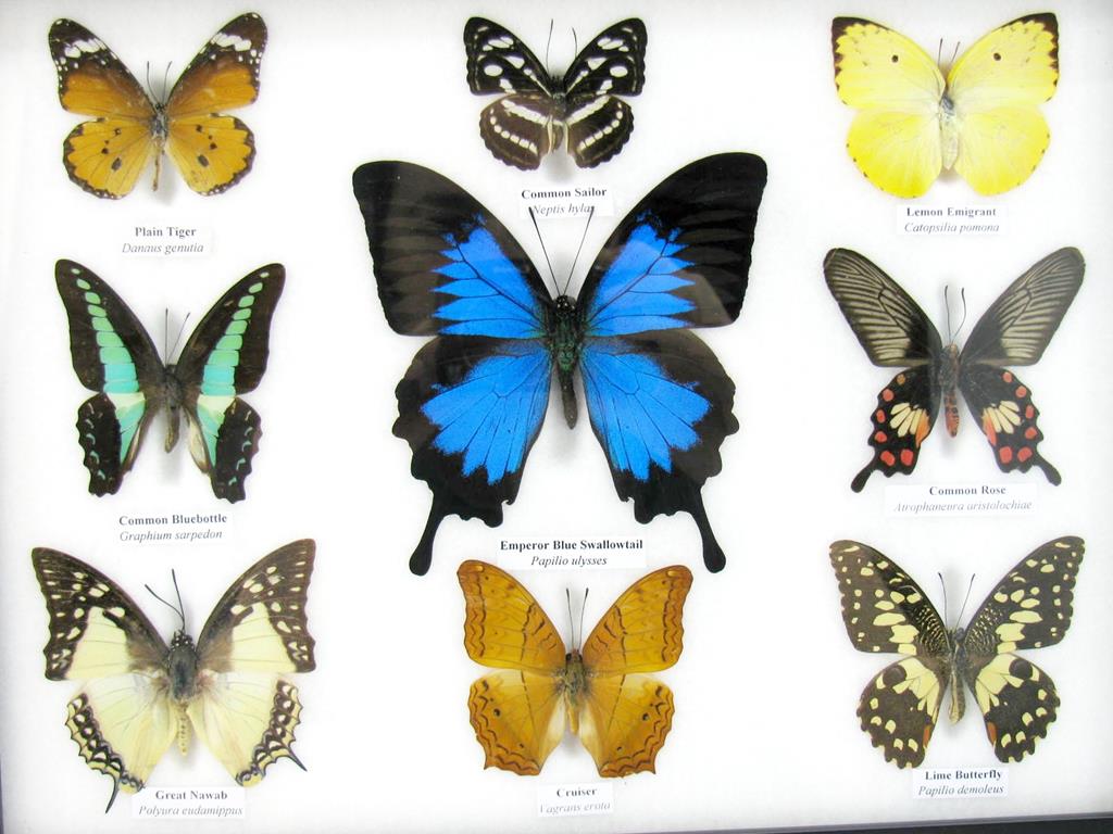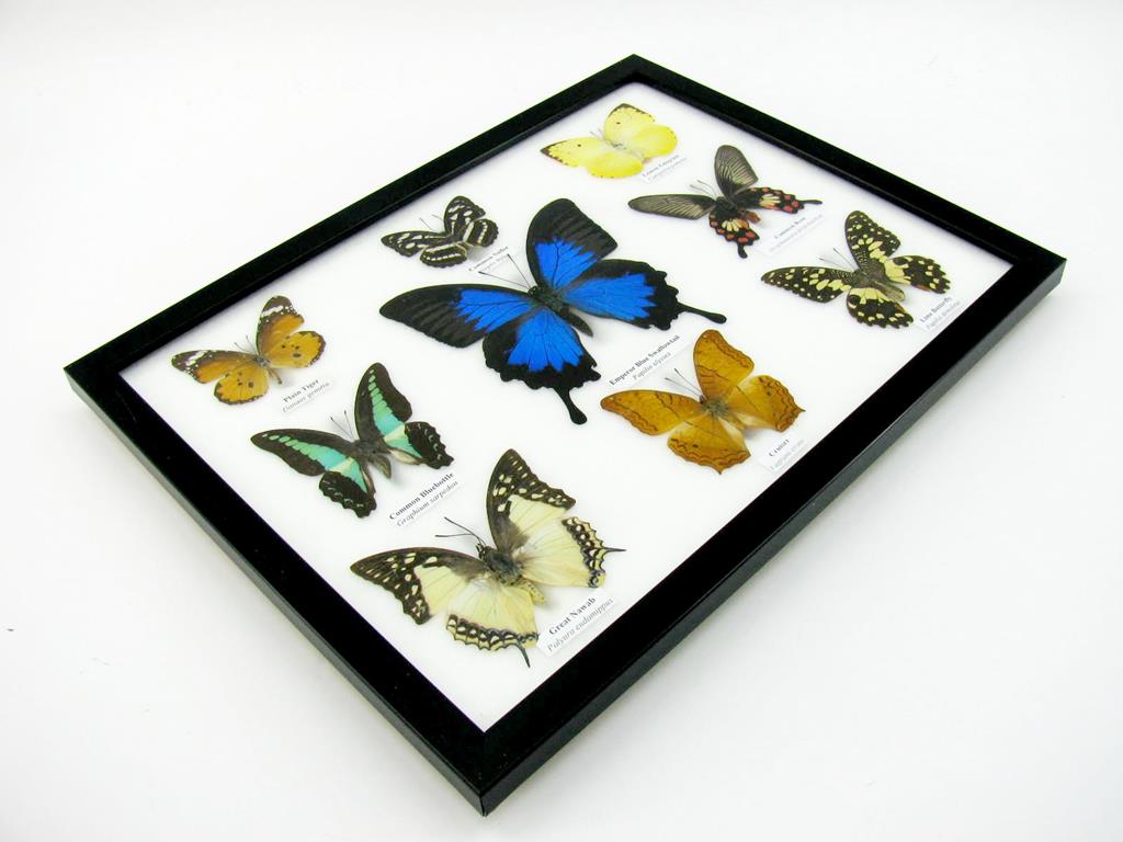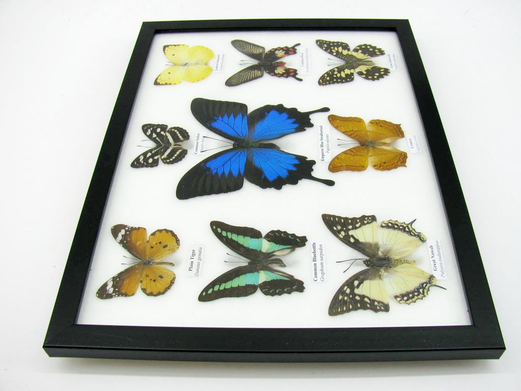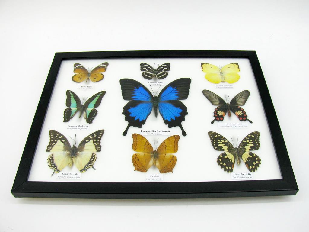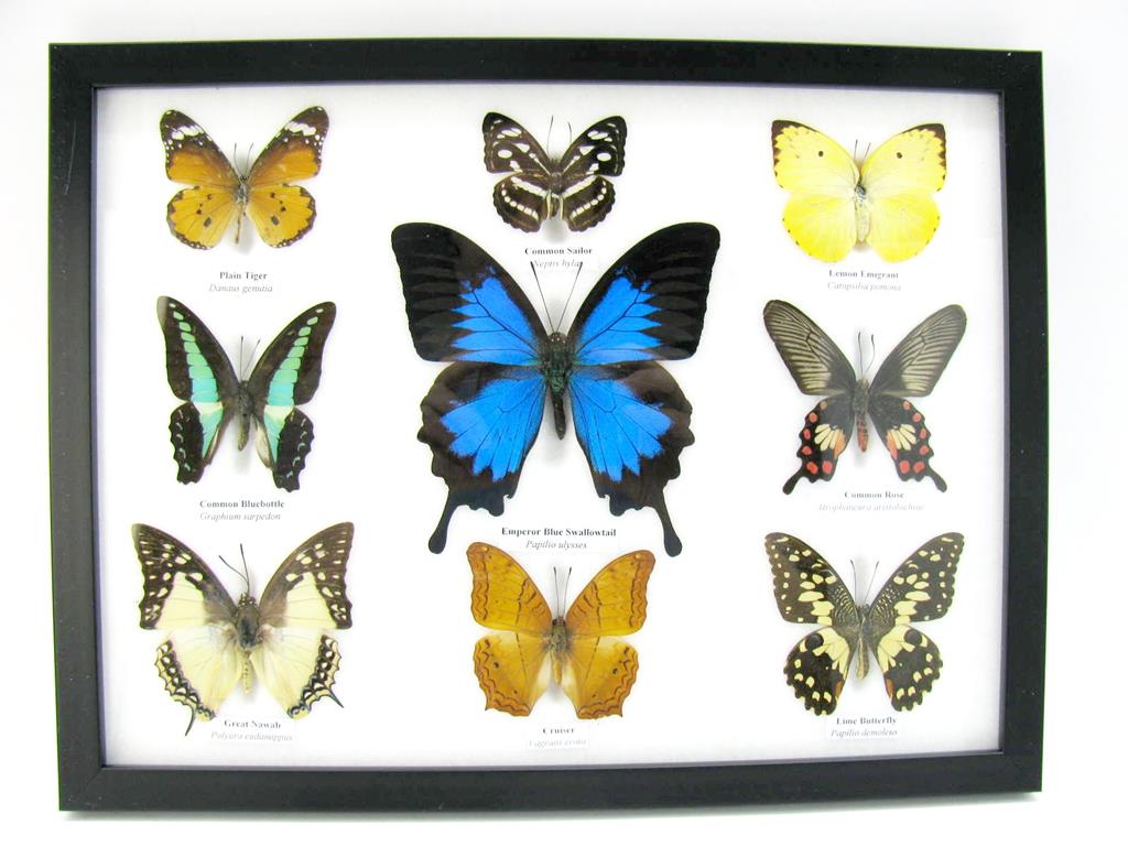Wunderschöne Schmetterlingssammlung im Bilderrahmen mit 9 echten Schmetterlingen – A-09-ulysses-14