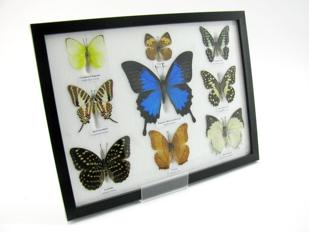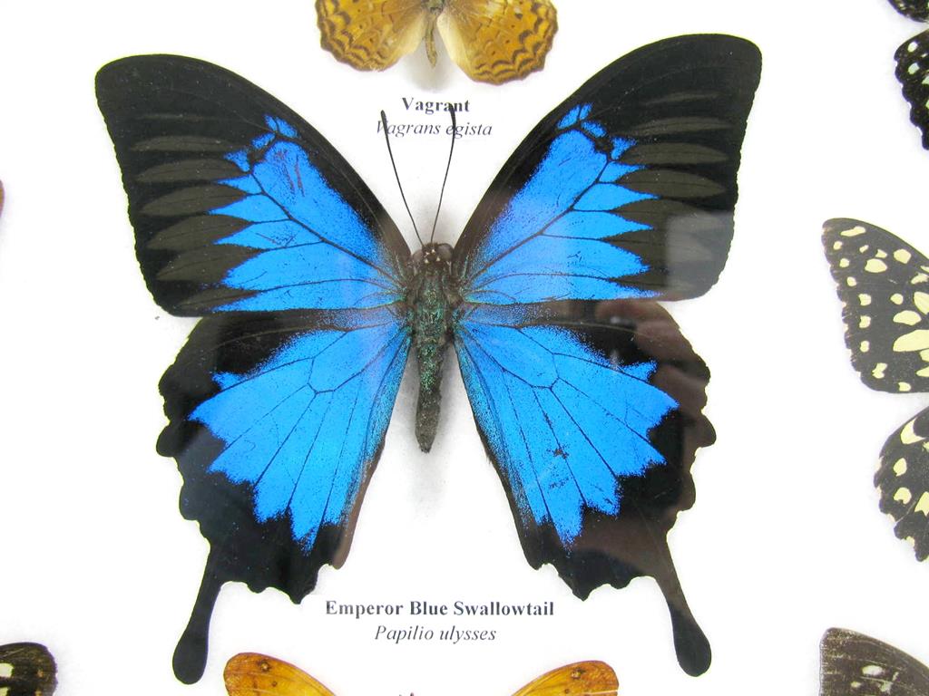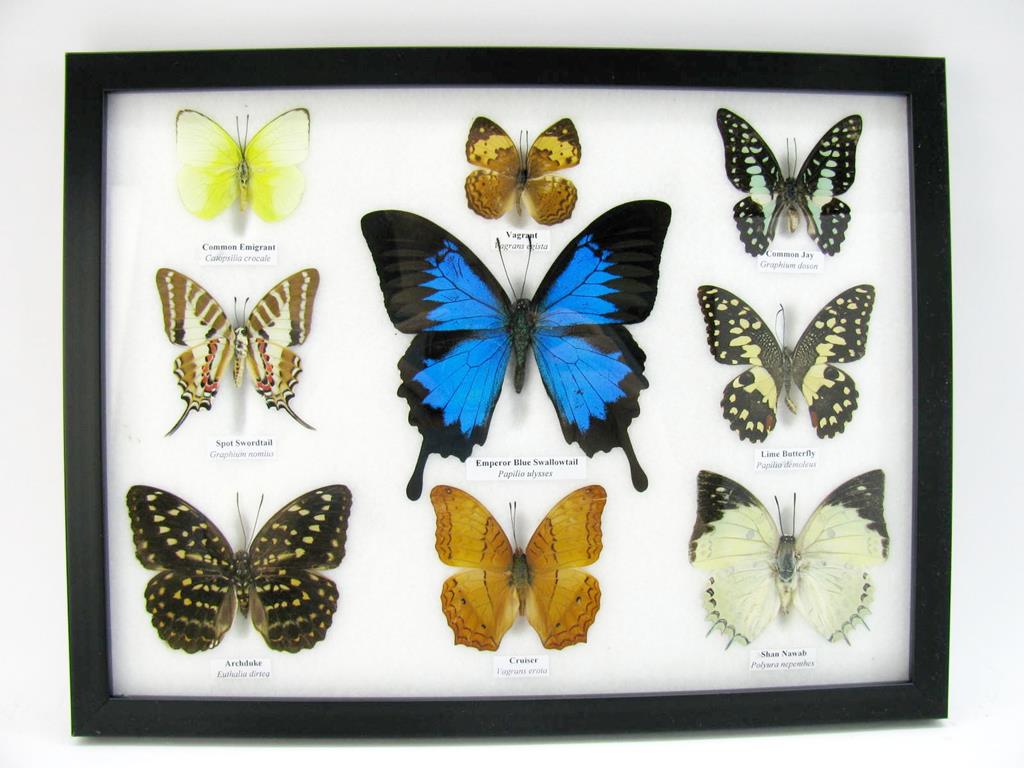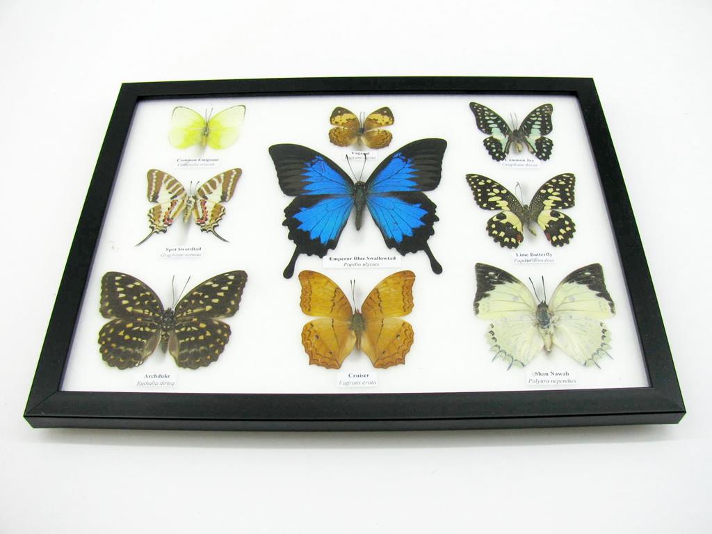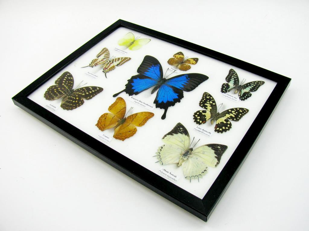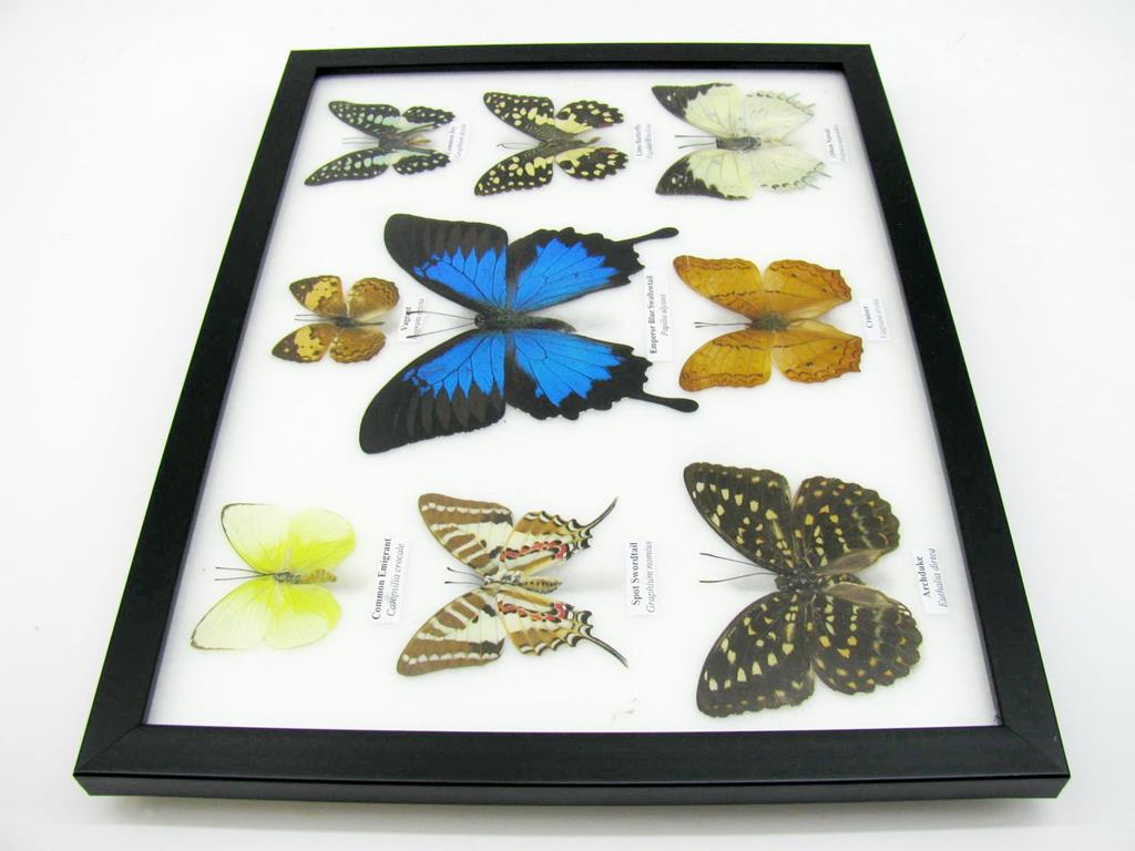 Wunderschöne Schmetterlingssammlung im Bilderrahmen mit 9 echten Schmetterlingen – A-09-ulysses-19